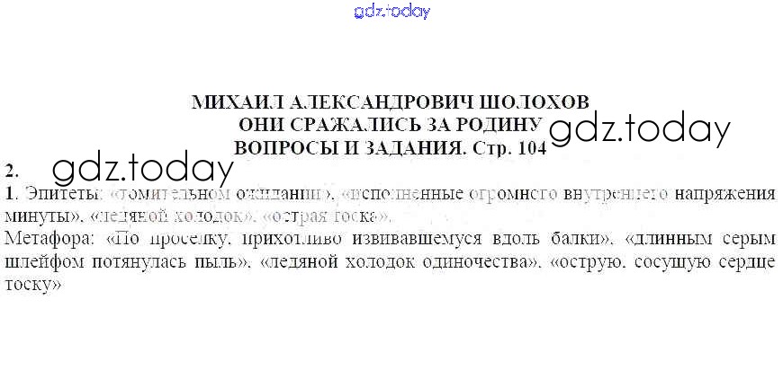 На страницах сайта gdz.today вы найдете учебный и вспомогательный материал, направленный на улучшения знаний школьной программы. ГДЗ - онлайн мир знаний Вопросы и задания Михаил Александрович Шолохов. Они сражались за Родину 2 Учебнику-хрестоматии по Литературе для 7 класса Курдюмова Дрофа Вертикаль 2018