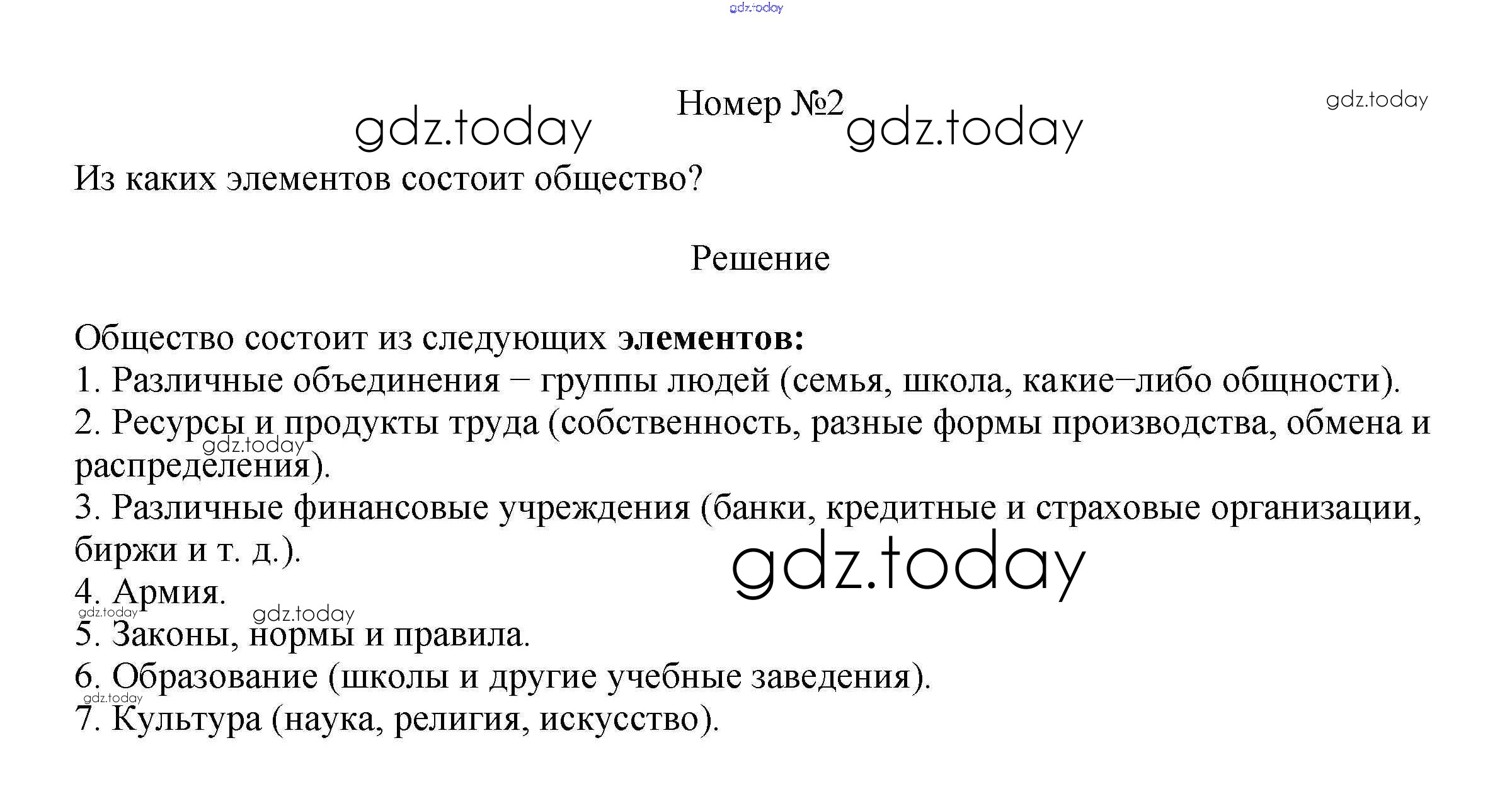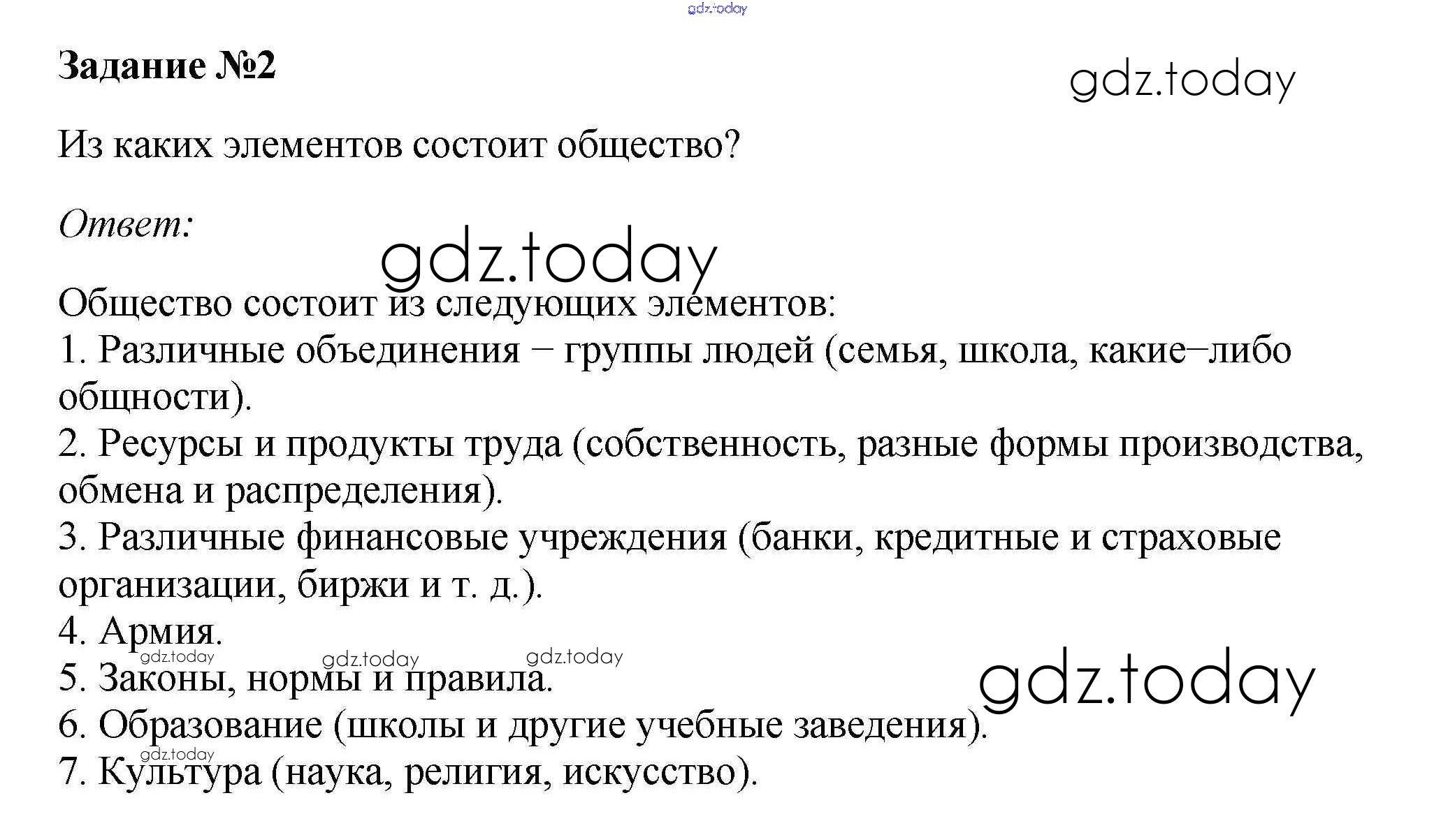 На страницах сайта gdz.today вы найдете учебный и вспомогательный материал, направленный на улучшения знаний школьной программы. ГДЗ - онлайн мир знаний Проверим себя §1. Как устроена общественная жизнь 2 Учебнику по Обществознанию для 7 класса Боголюбов, Городецкая Просвещение, Просвещение Академический школьный учебник 2015, 2022