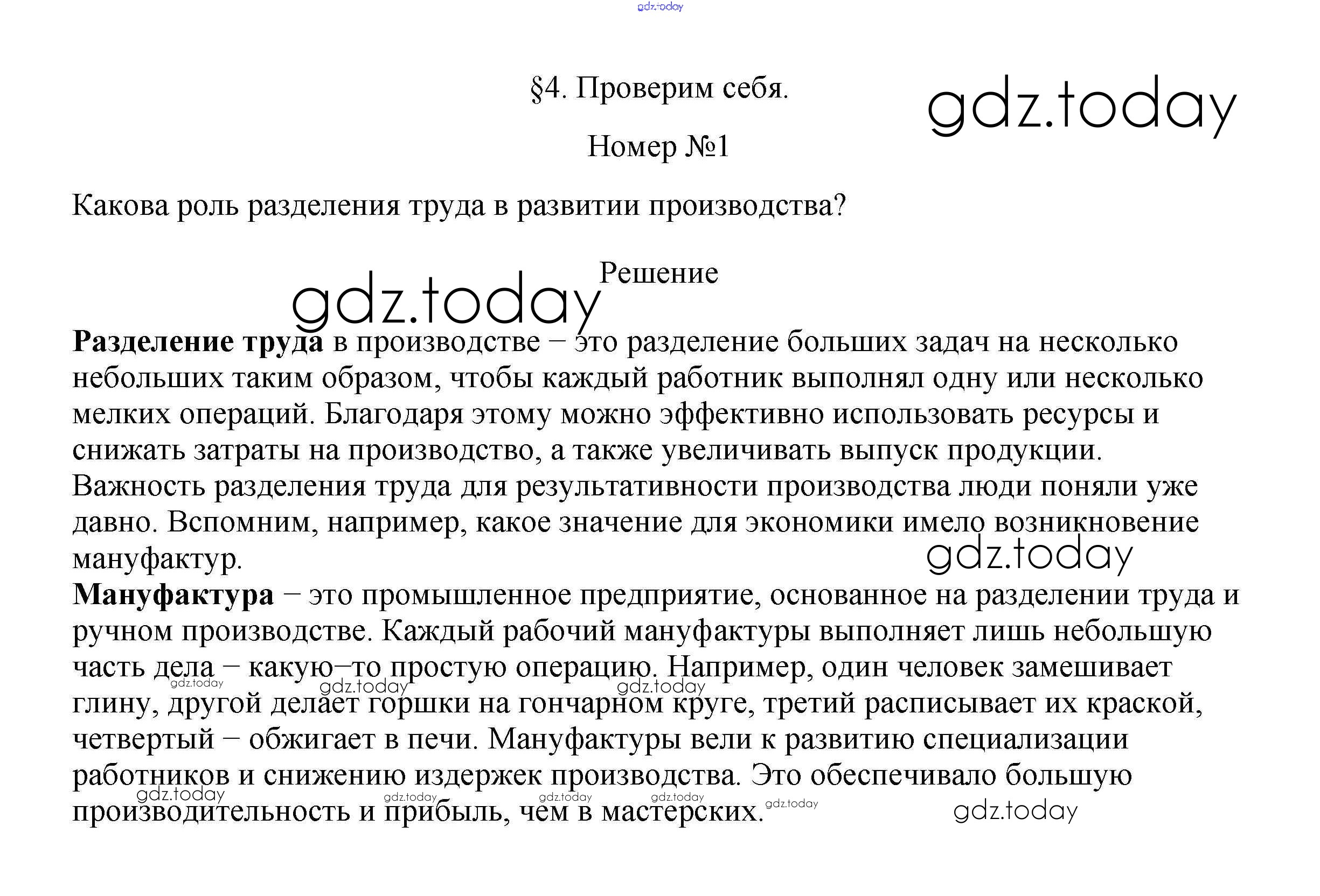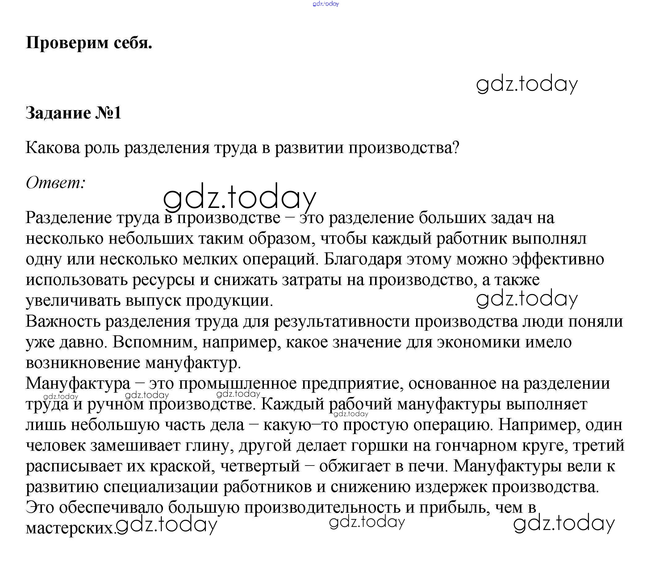 На страницах сайта gdz.today вы найдете учебный и вспомогательный материал, направленный на улучшения знаний школьной программы. ГДЗ - онлайн мир знаний Проверим себя §4. Производственная деятельность человека 1 Учебнику по Обществознанию для 7 класса Боголюбов, Городецкая Просвещение, Просвещение Академический школьный учебник 2015, 2022