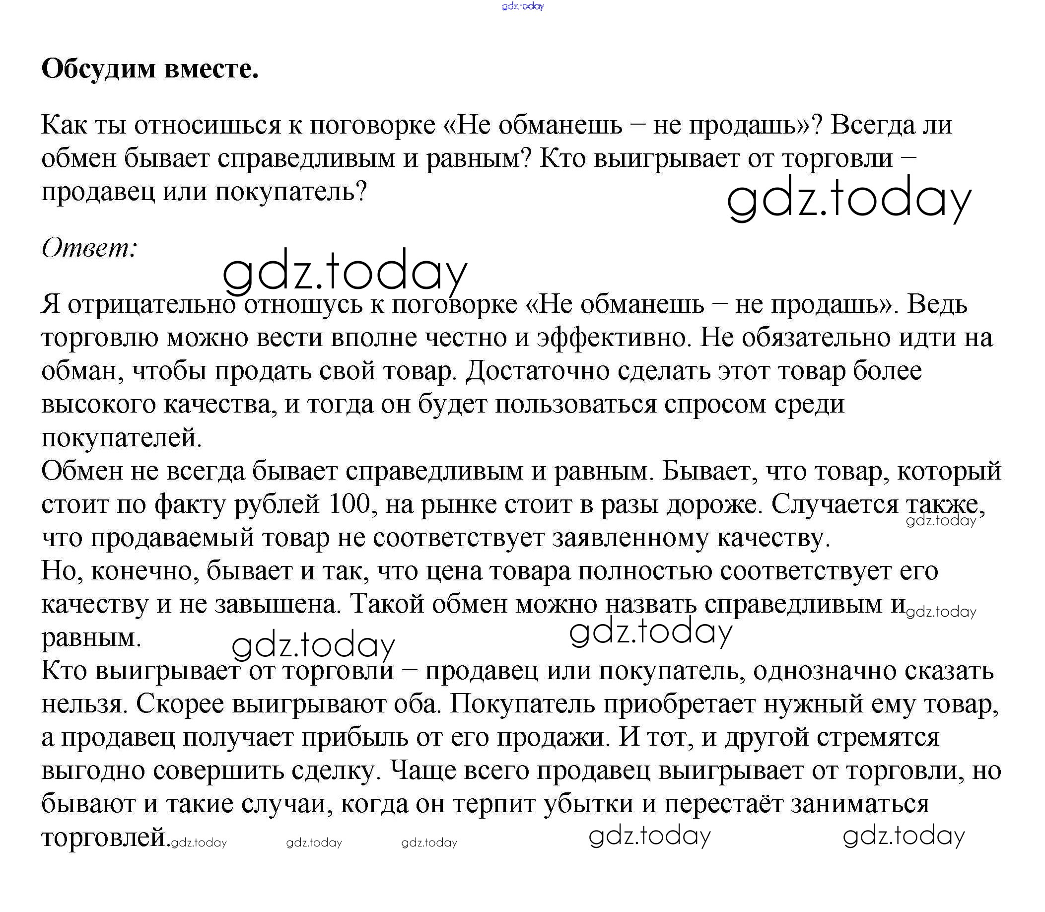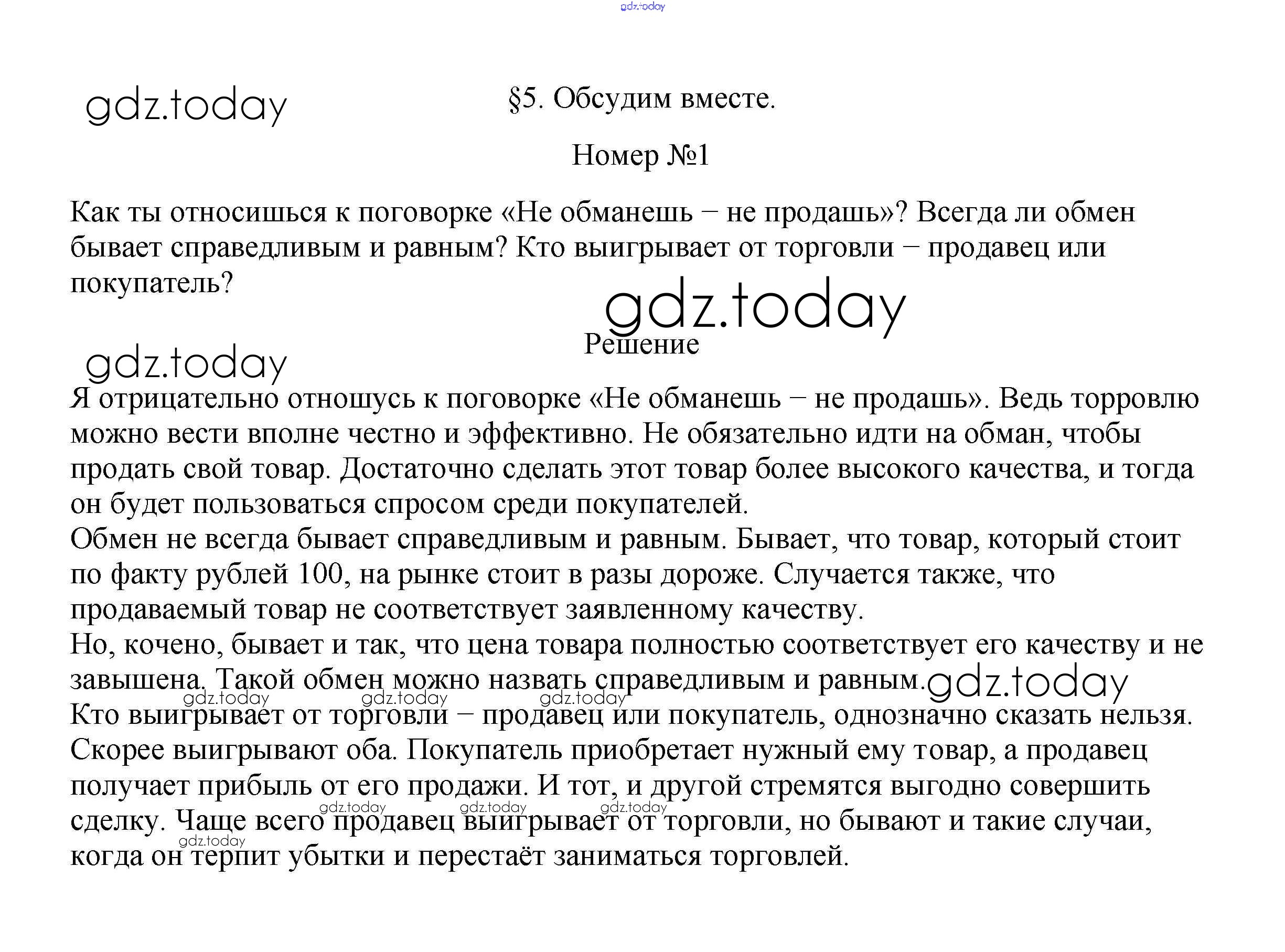 Ответы к Обсудим вместе §5. Обмен, торговля, реклама 1 Учебнику по Обществознанию для 7 класса Боголюбов, Городецкая Просвещение, Просвещение Академический школьный учебник 2015, 2022