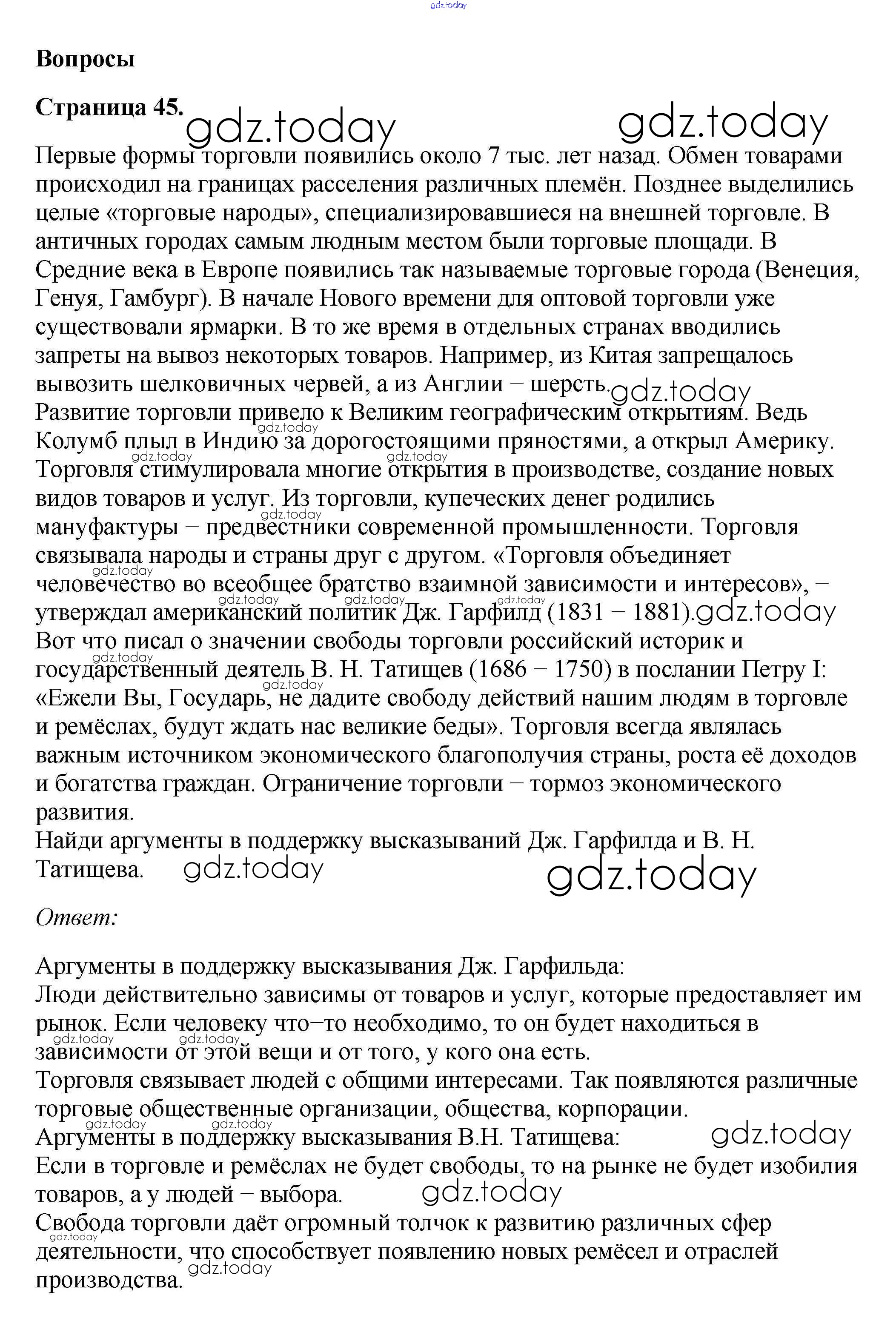 На страницах сайта gdz.today вы найдете учебный и вспомогательный материал, направленный на улучшения знаний школьной программы. ГДЗ - онлайн мир знаний Вопросы §5. Обмен, торговля, реклама стр.45 Учебнику по Обществознанию для 7 класса Боголюбов, Городецкая Просвещение, Просвещение Академический школьный учебник 2015, 2022