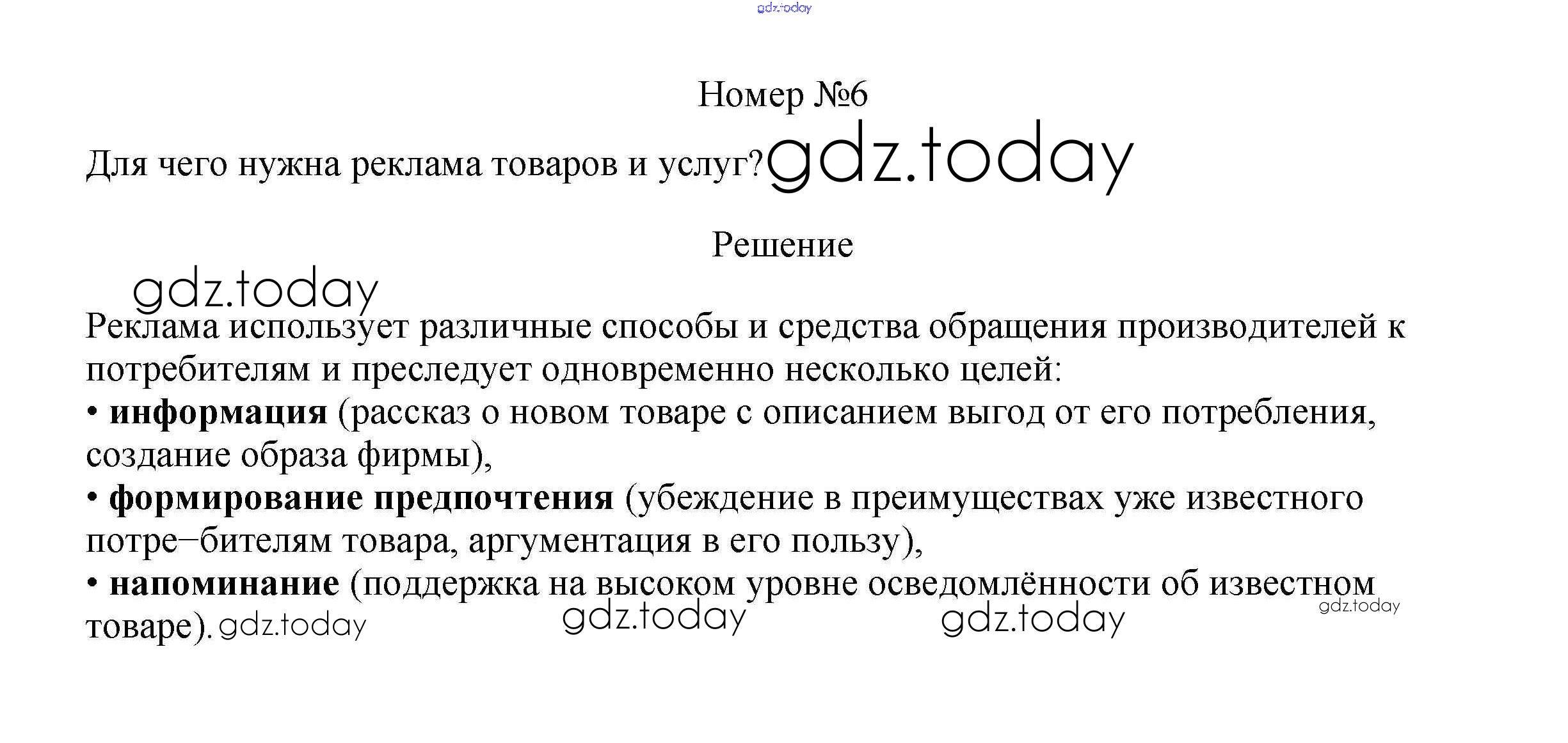 На страницах сайта gdz.today вы найдете учебный и вспомогательный материал, направленный на улучшения знаний школьной программы. ГДЗ - онлайн мир знаний Проверим себя §5. Обмен, торговля, реклама 6 Учебнику по Обществознанию для 7 класса Боголюбов, Городецкая Просвещение, Просвещение Академический школьный учебник 2015, 2022