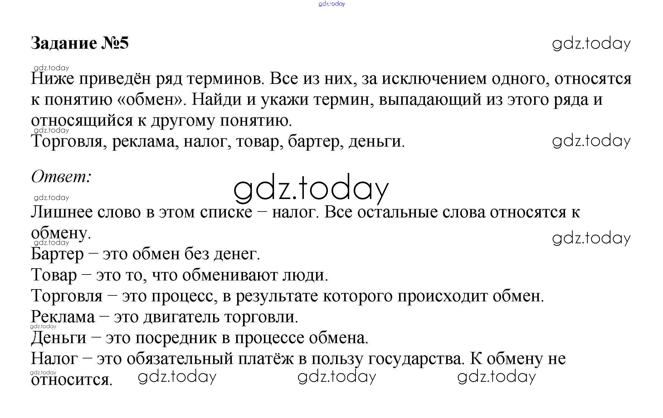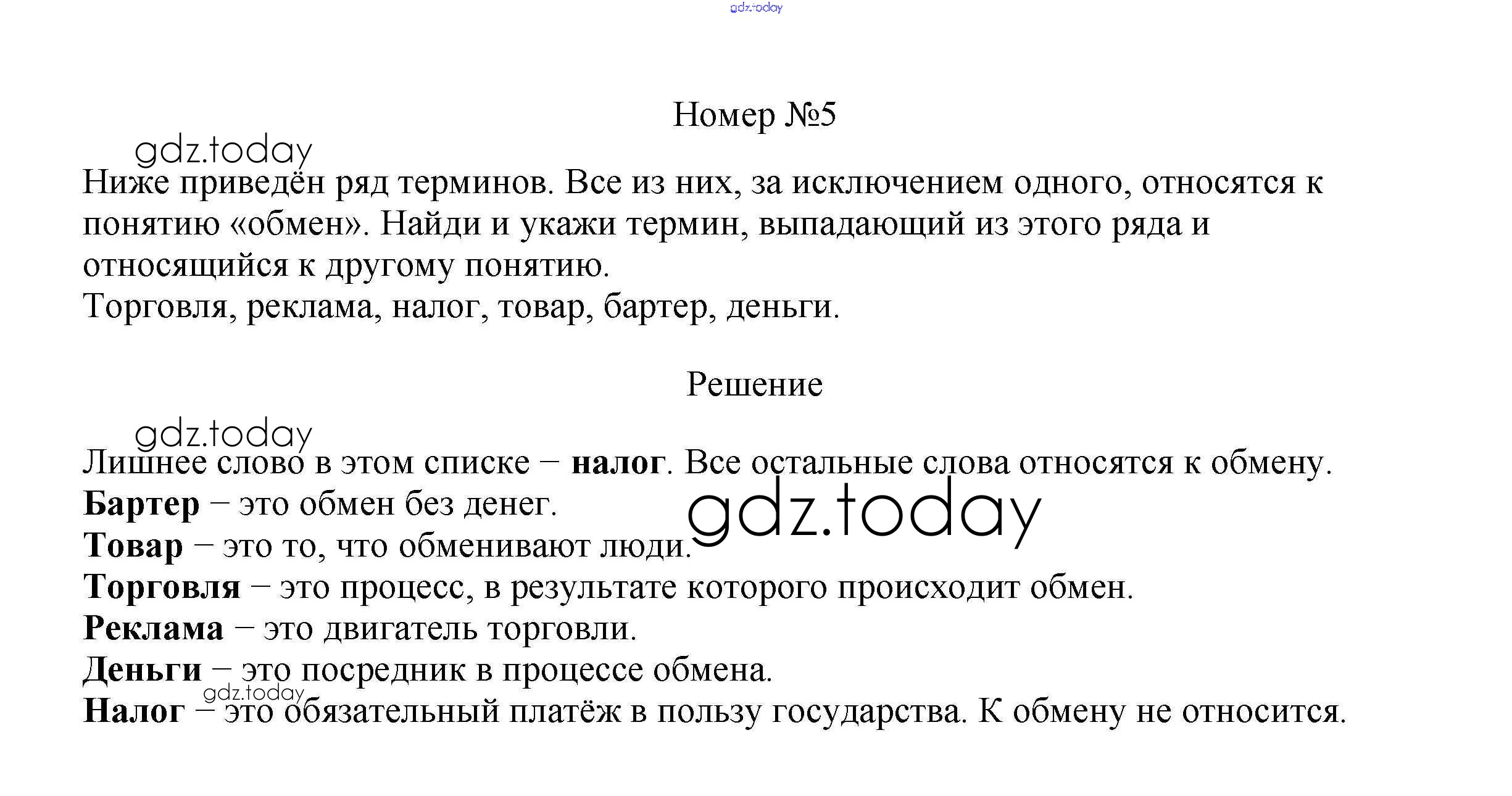 На страницах сайта gdz.today вы найдете учебный и вспомогательный материал, направленный на улучшения знаний школьной программы. ГДЗ - онлайн мир знаний В классе и дома §5. Обмен, торговля, реклама 5 Учебнику по Обществознанию для 7 класса Боголюбов, Городецкая Просвещение, Просвещение Академический школьный учебник 2015, 2022