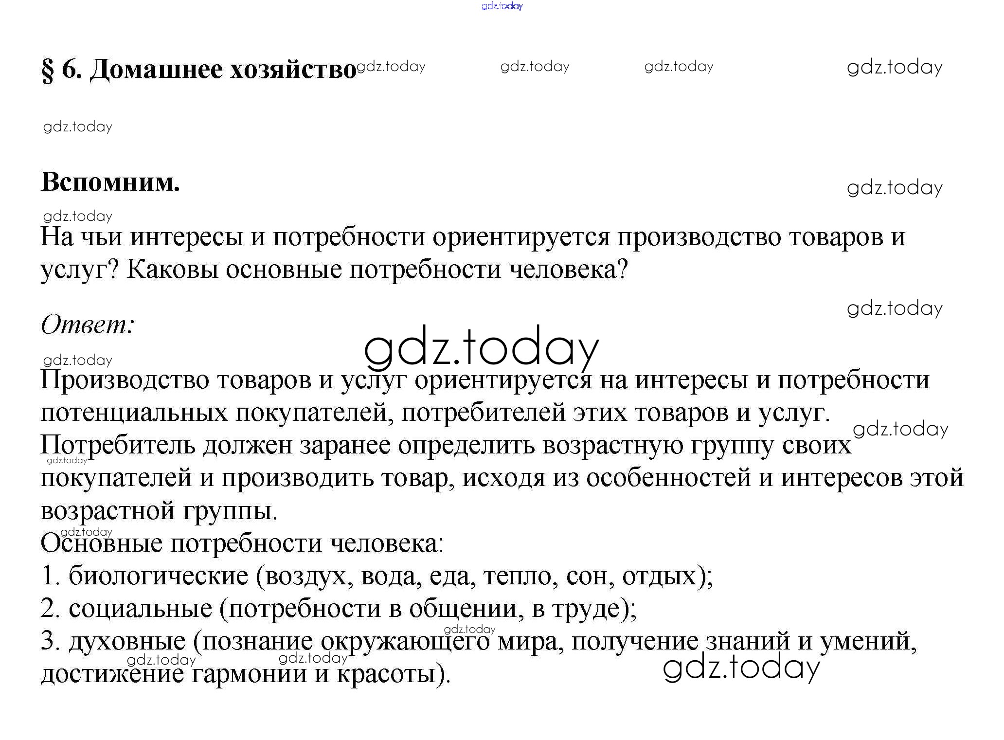 На страницах сайта gdz.today вы найдете учебный и вспомогательный материал, направленный на улучшения знаний школьной программы. ГДЗ - онлайн мир знаний Вспомним §6. Домашнее хозяйство 1 Учебнику по Обществознанию для 7 класса Боголюбов, Городецкая Просвещение, Просвещение Академический школьный учебник 2015, 2022