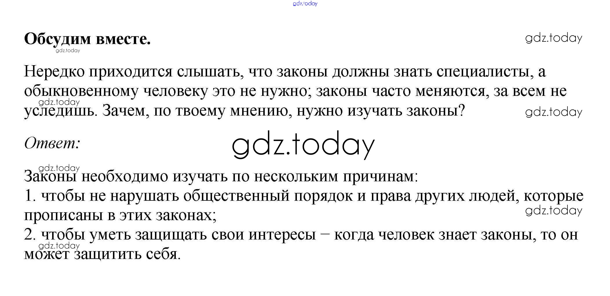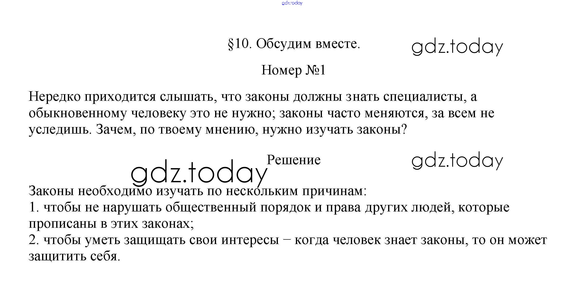 На страницах сайта gdz.today вы найдете учебный и вспомогательный материал, направленный на улучшения знаний школьной программы. ГДЗ - онлайн мир знаний Обсудим вместе §10. Почему важны законы 1 Учебнику по Обществознанию для 7 класса Боголюбов, Городецкая Просвещение, Просвещение Академический школьный учебник 2015, 2019