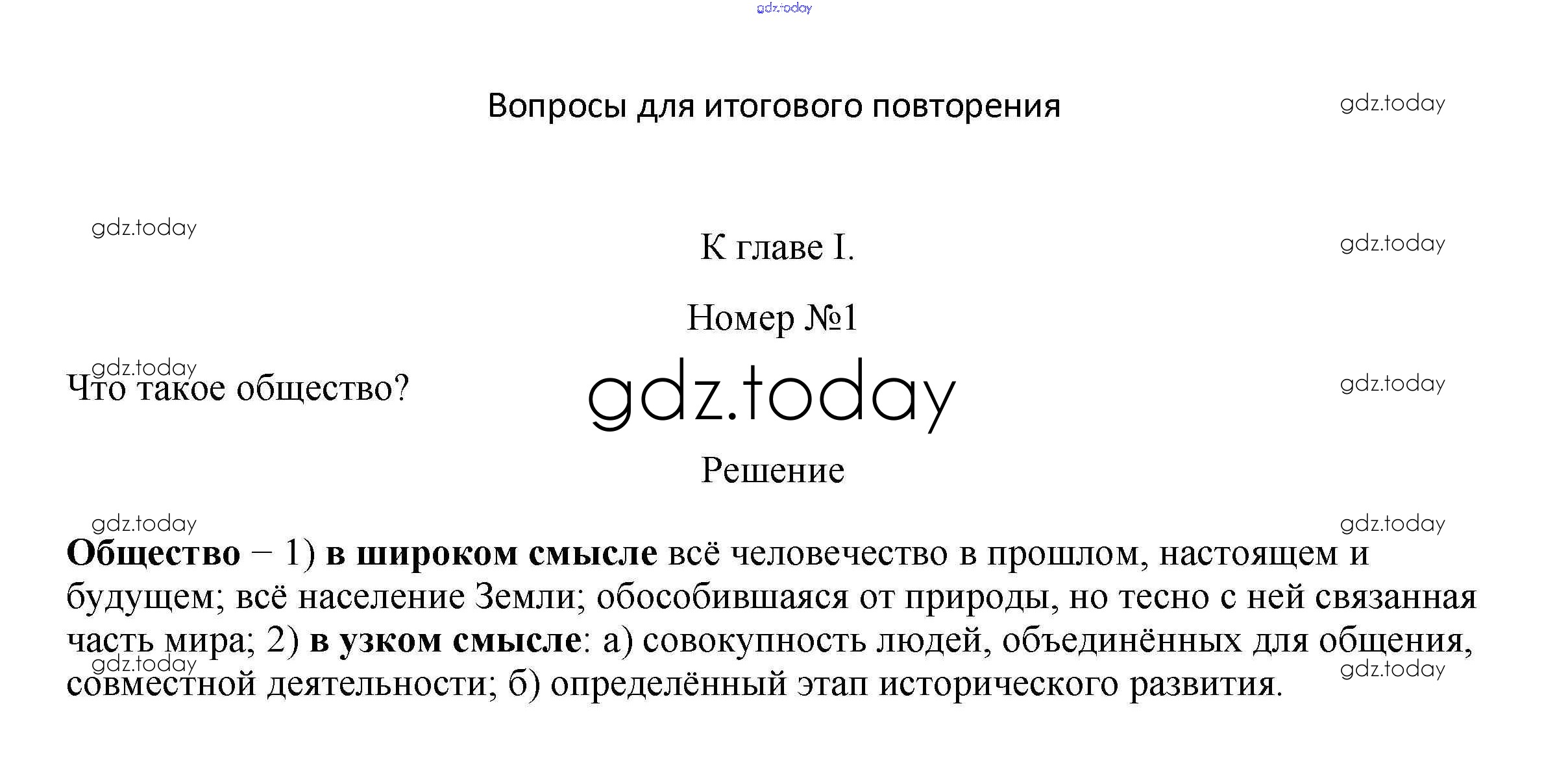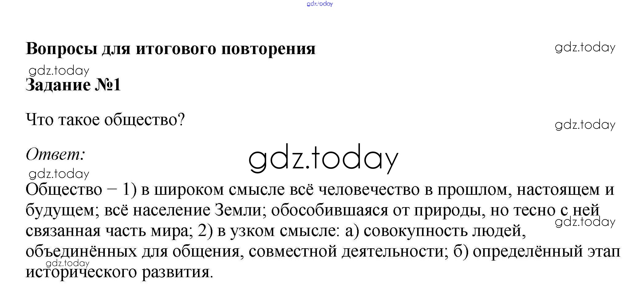 На страницах сайта gdz.today вы найдете учебный и вспомогательный материал, направленный на улучшения знаний школьной программы. ГДЗ - онлайн мир знаний Вопросы для итогового повторения ГЛАВА I. Мы живем в обществе 1 Учебнику по Обществознанию для 7 класса Боголюбов, Городецкая Просвещение, Просвещение Академический школьный учебник 2015, 2019