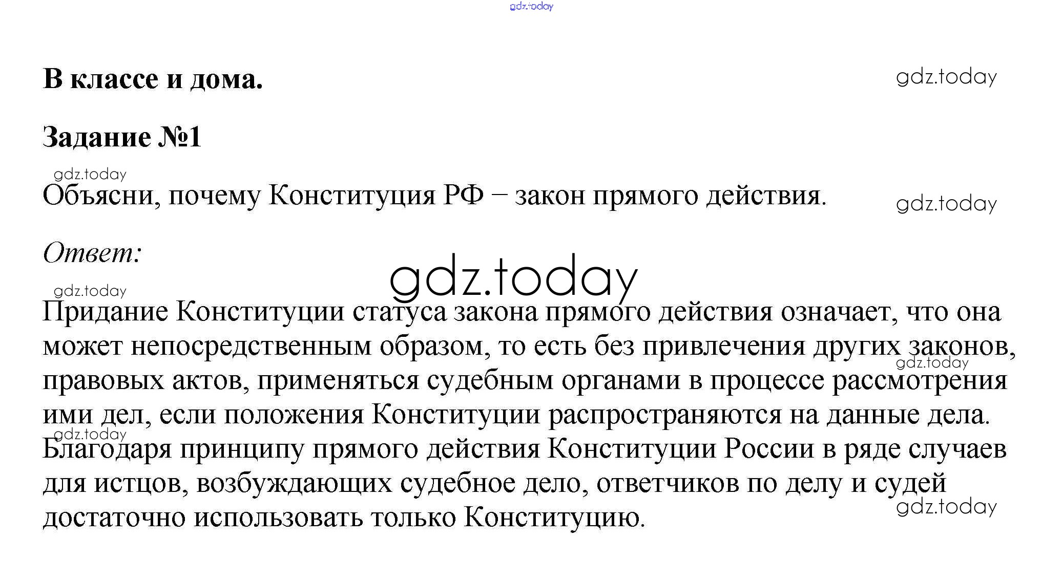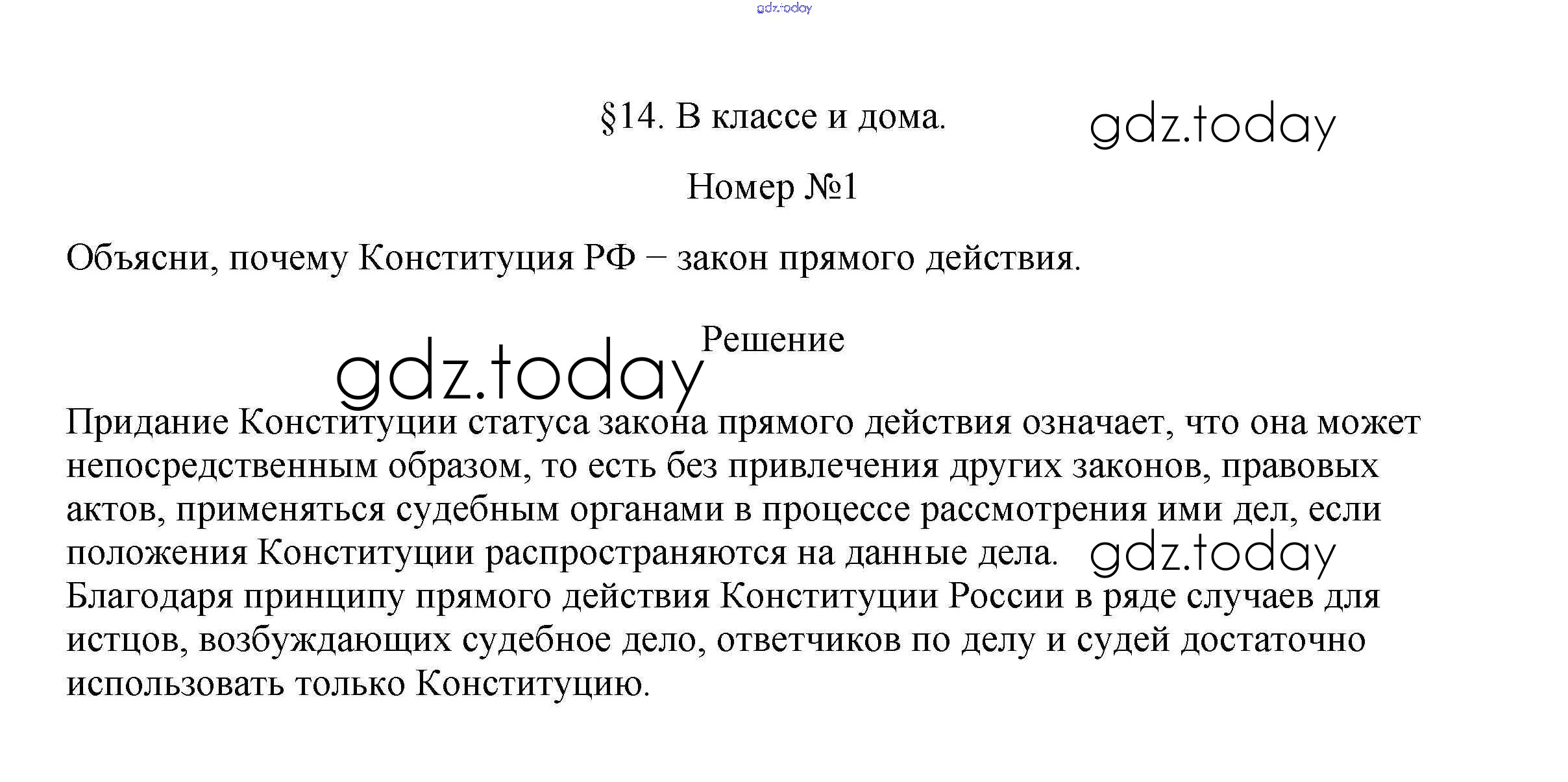 Ответы к В классе и дома §14. Конституция Российской Федерации 1 Учебнику по Обществознанию для 7 класса Боголюбов, Городецкая Просвещение, Просвещение Академический школьный учебник 2015, 2019