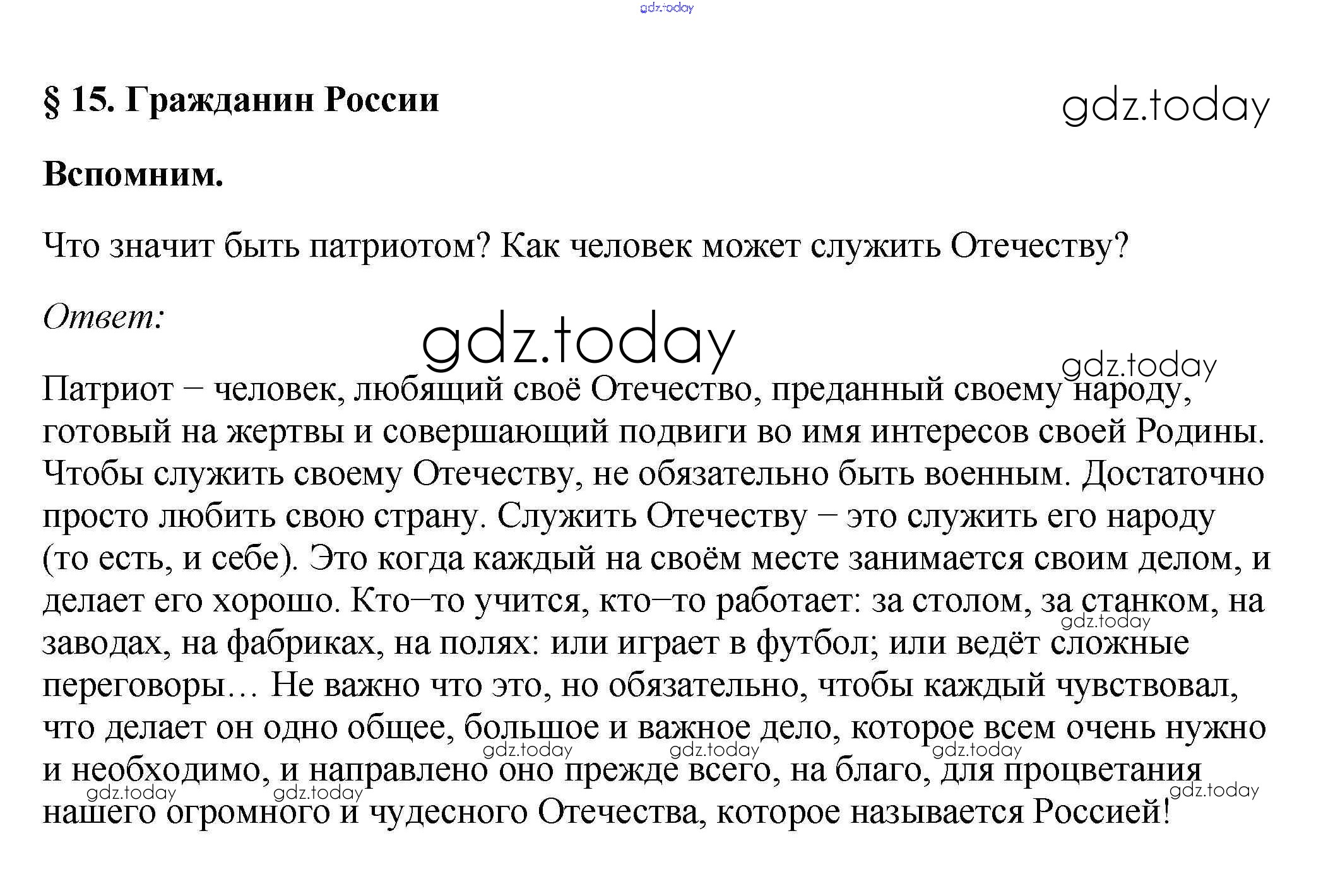 На страницах сайта gdz.today вы найдете учебный и вспомогательный материал, направленный на улучшения знаний школьной программы. ГДЗ - онлайн мир знаний Вспомним §15. Гражданин России 1 Учебнику по Обществознанию для 7 класса Боголюбов, Городецкая Просвещение, Просвещение Академический школьный учебник 2015, 2022