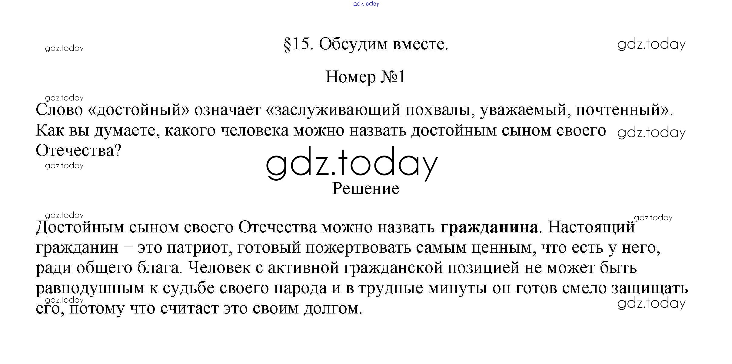 На страницах сайта gdz.today вы найдете учебный и вспомогательный материал, направленный на улучшения знаний школьной программы. ГДЗ - онлайн мир знаний Обсудим вместе §15. Гражданин России 1 Учебнику по Обществознанию для 7 класса Боголюбов, Городецкая Просвещение, Просвещение Академический школьный учебник 2015, 2022