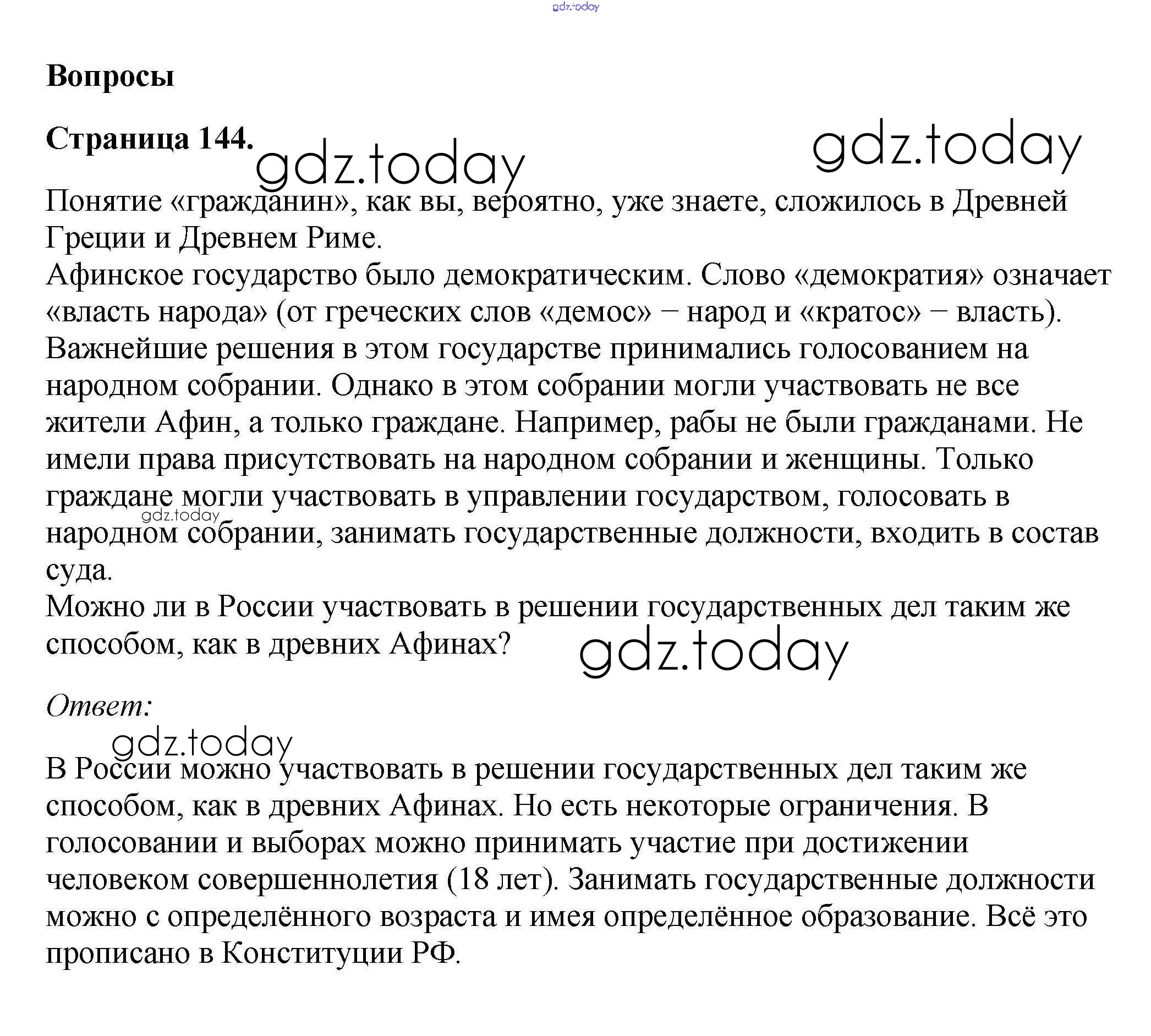 На страницах сайта gdz.today вы найдете учебный и вспомогательный материал, направленный на улучшения знаний школьной программы. ГДЗ - онлайн мир знаний Вопросы §15. Гражданин России стр.144 Учебнику по Обществознанию для 7 класса Боголюбов, Городецкая Просвещение, Просвещение Академический школьный учебник 2015, 2022