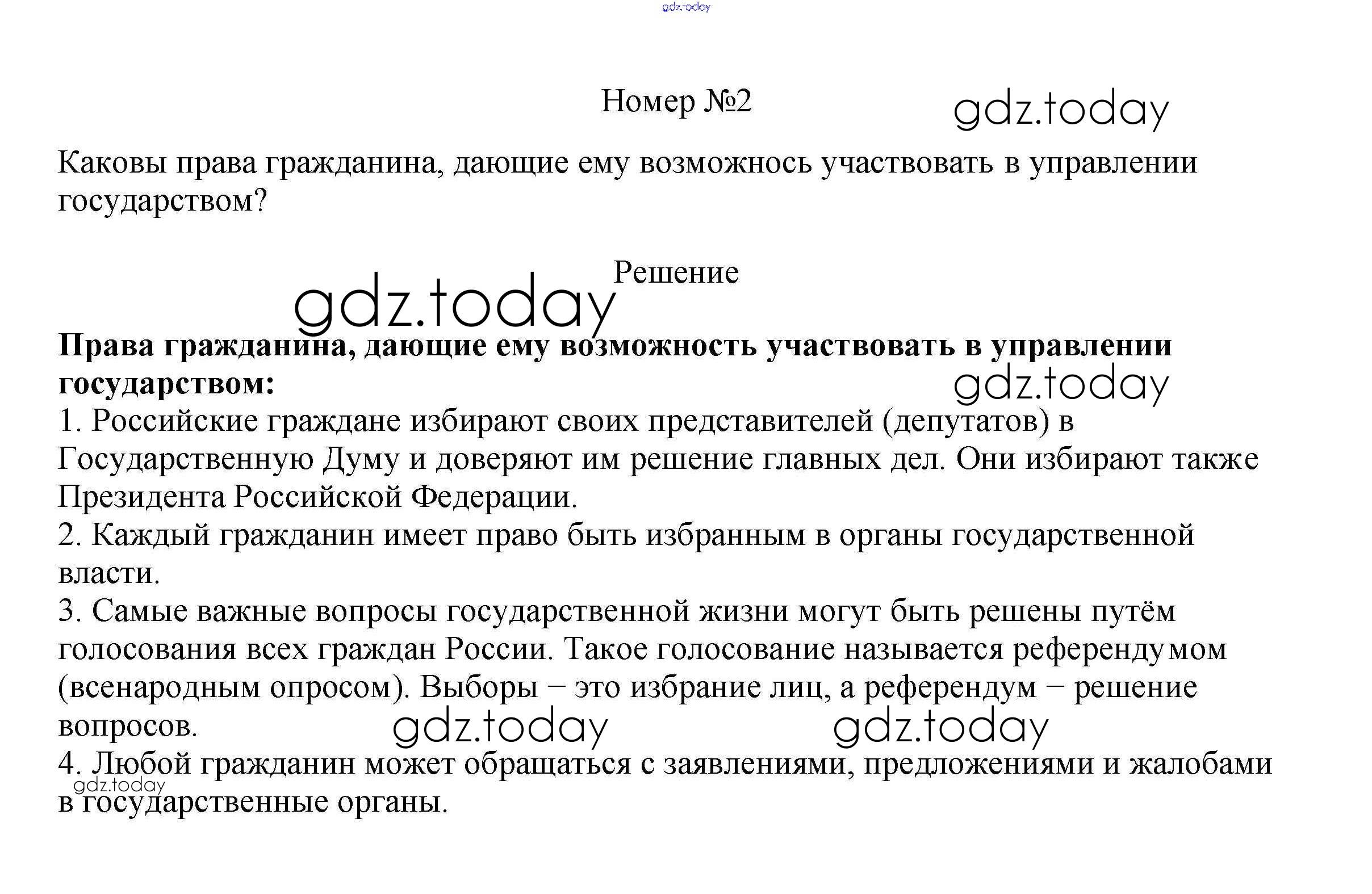 На страницах сайта gdz.today вы найдете учебный и вспомогательный материал, направленный на улучшения знаний школьной программы. ГДЗ - онлайн мир знаний Проверим себя §15. Гражданин России 2 Учебнику по Обществознанию для 7 класса Боголюбов, Городецкая Просвещение, Просвещение Академический школьный учебник 2015, 2022