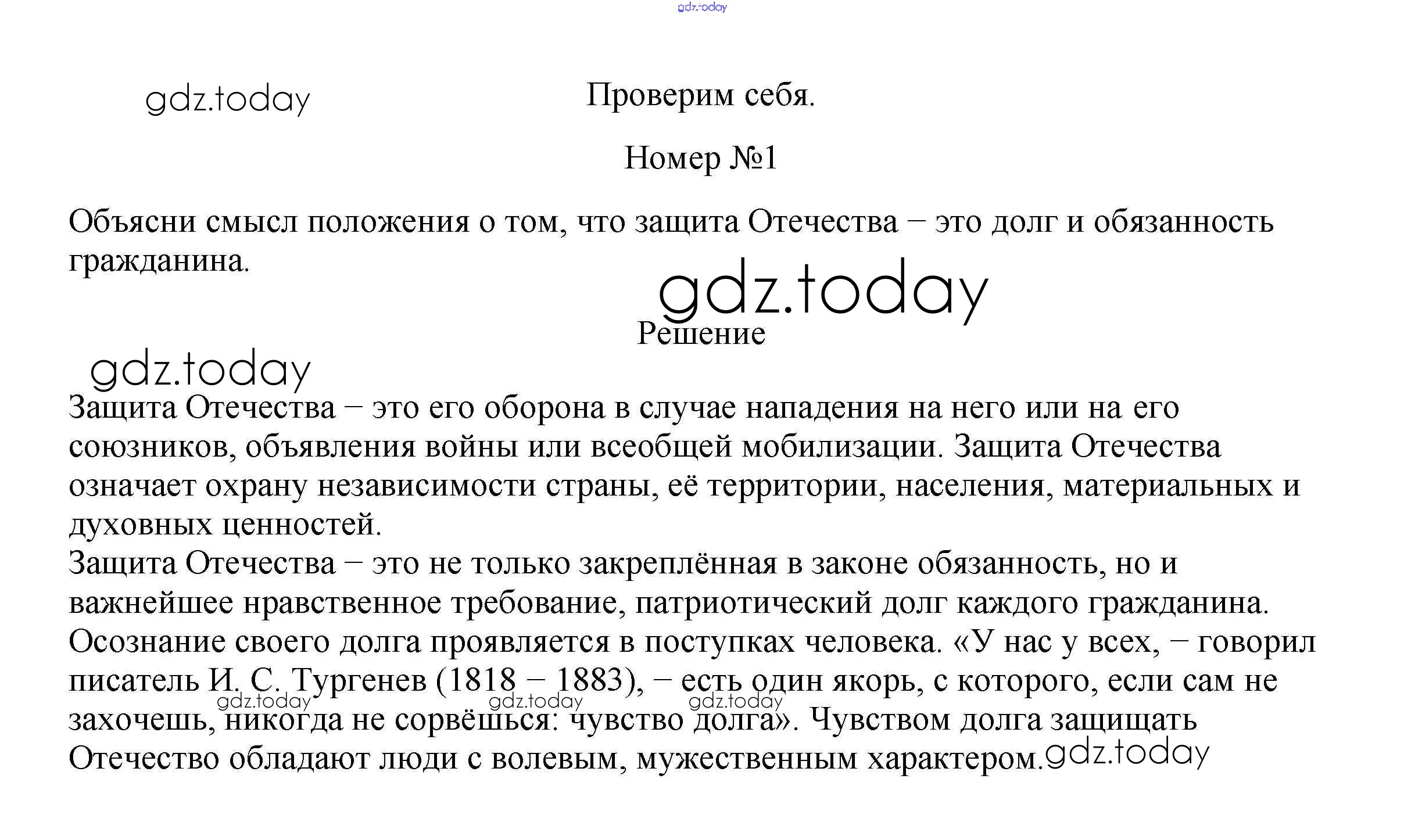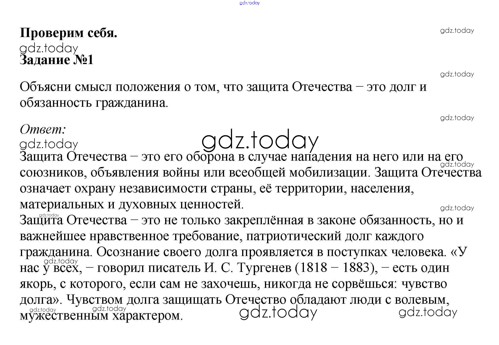 На страницах сайта gdz.today вы найдете учебный и вспомогательный материал, направленный на улучшения знаний школьной программы. ГДЗ - онлайн мир знаний Проверим себя §17. Защита Отечества 1 Учебнику по Обществознанию для 7 класса Боголюбов, Городецкая Просвещение, Просвещение Академический школьный учебник 2015, 2022