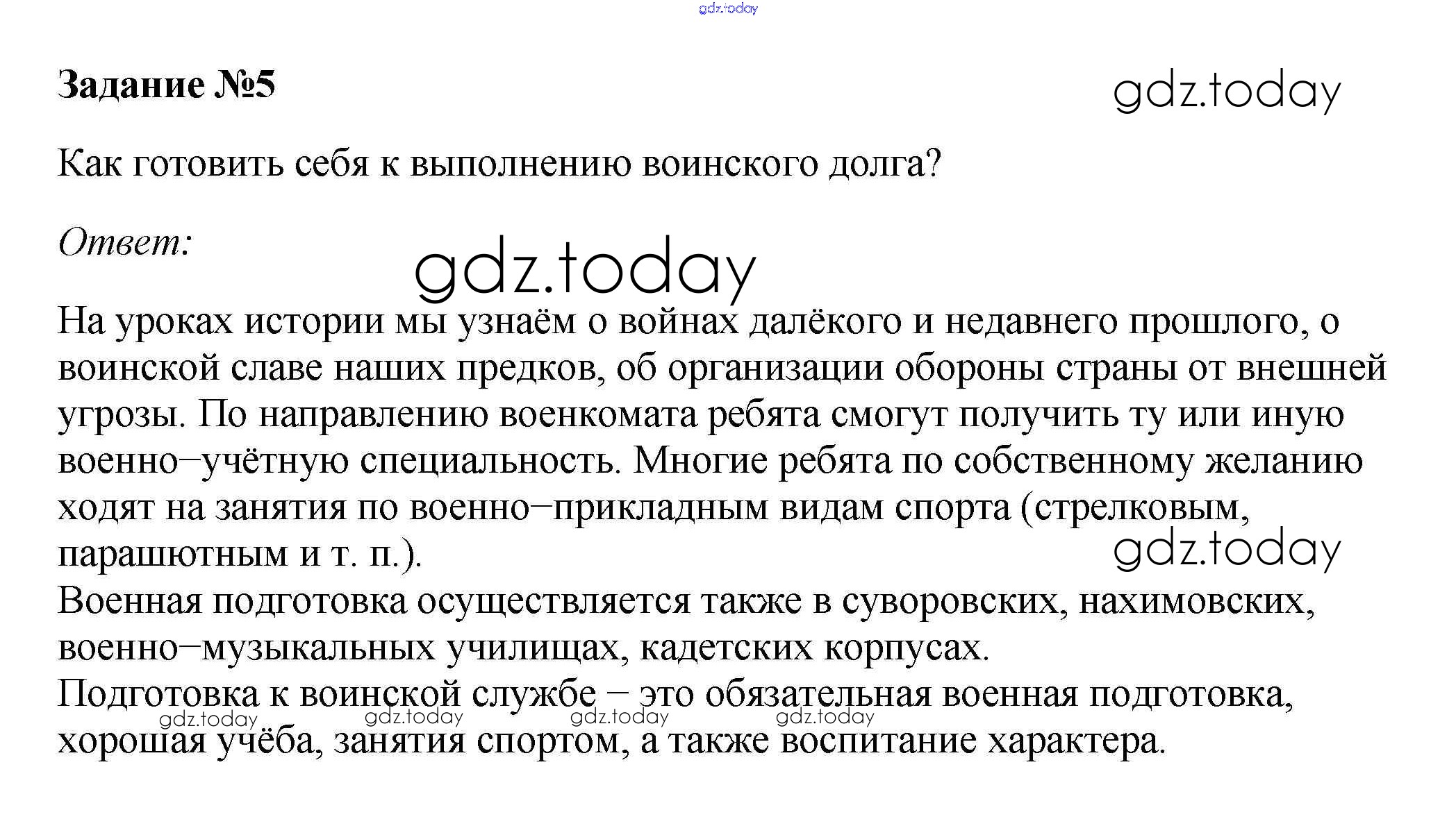 На страницах сайта gdz.today вы найдете учебный и вспомогательный материал, направленный на улучшения знаний школьной программы. ГДЗ - онлайн мир знаний Проверим себя §17. Защита Отечества 5 Учебнику по Обществознанию для 7 класса Боголюбов, Городецкая Просвещение, Просвещение Академический школьный учебник 2015, 2022