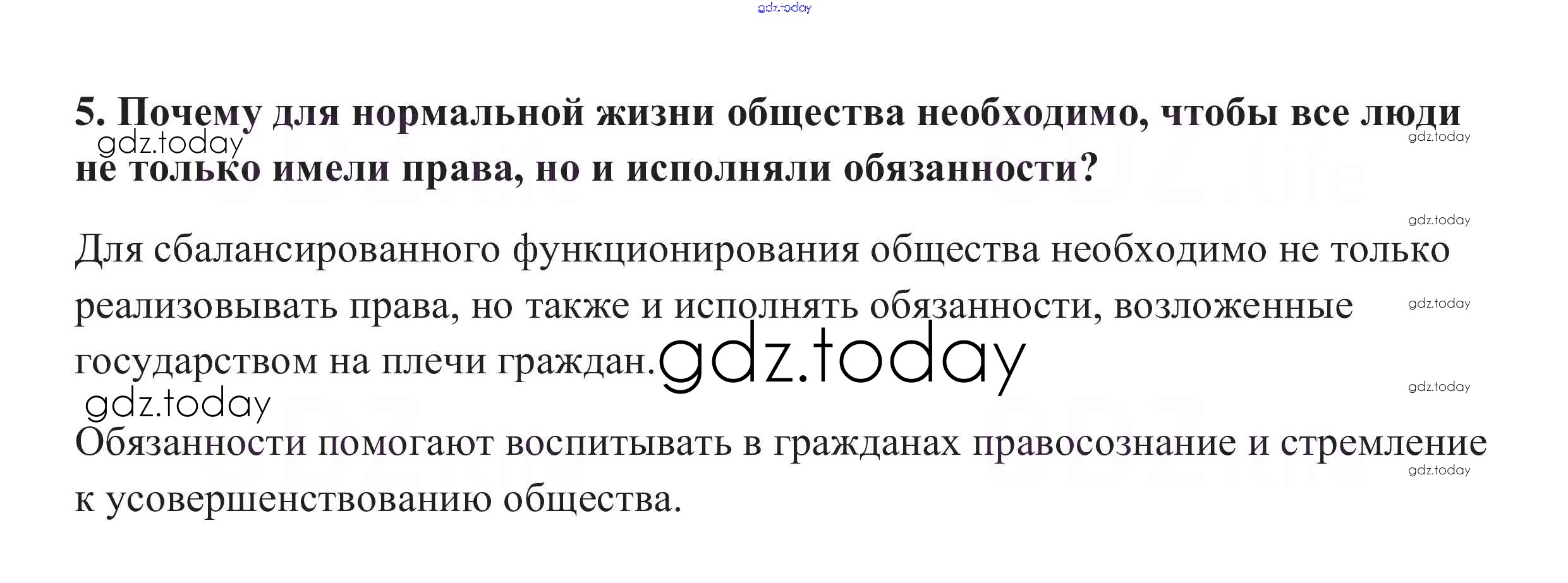 На страницах сайта gdz.today вы найдете учебный и вспомогательный материал, направленный на улучшения знаний школьной программы. ГДЗ - онлайн мир знаний Проверим себя §2. Права и обязанности граждан 5 Учебнику по Обществознанию для 7 класса Боголюбов, Городецкая Просвещение, Просвещение Академический школьный учебник 2015, 2022
