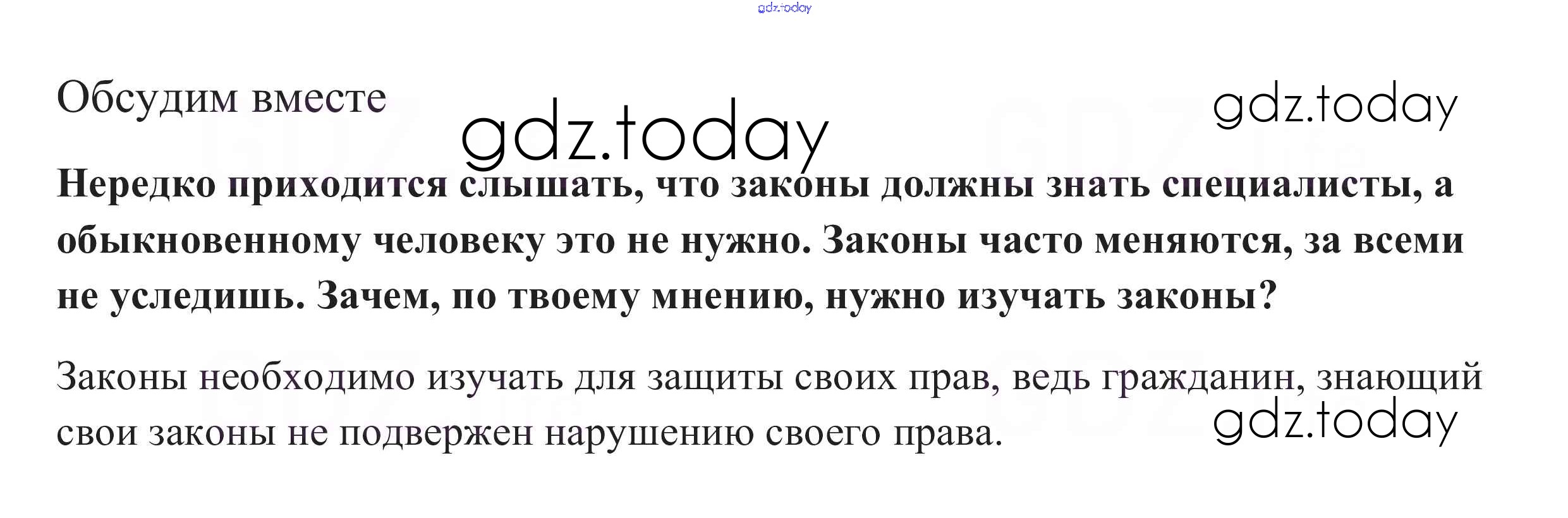 На страницах сайта gdz.today вы найдете учебный и вспомогательный материал, направленный на улучшения знаний школьной программы. ГДЗ - онлайн мир знаний Обсудим вместе §3. Почему важно соблюдать законы 1 Учебнику по Обществознанию для 7 класса Боголюбов, Городецкая Просвещение, Просвещение Академический школьный учебник 2015, 2022