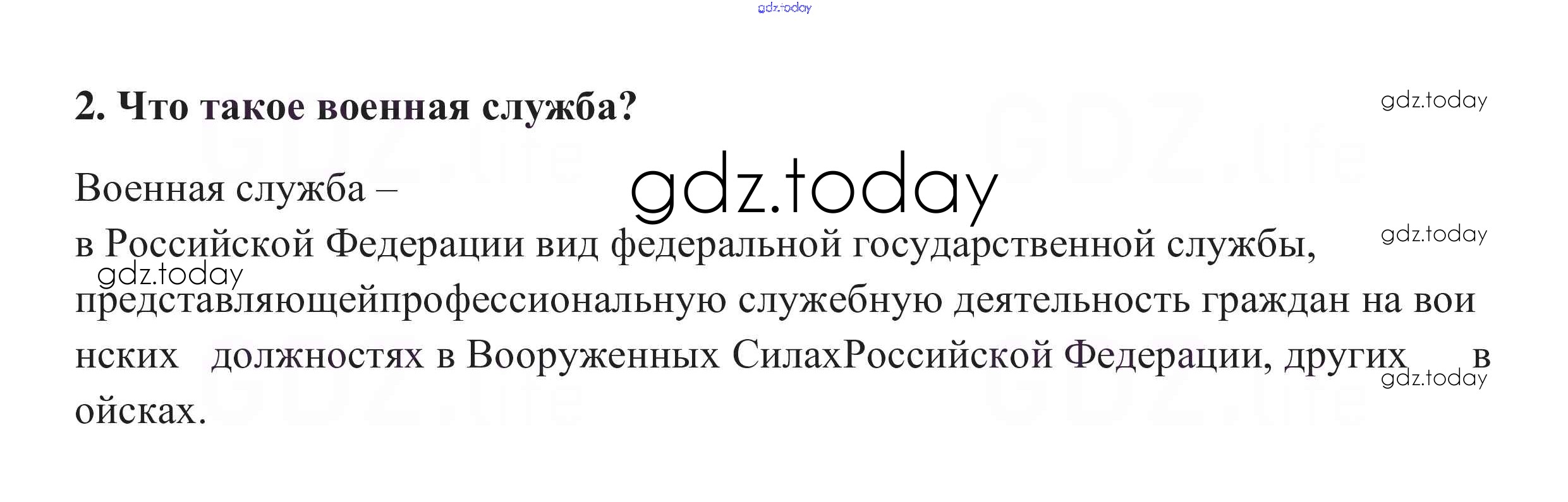 На страницах сайта gdz.today вы найдете учебный и вспомогательный материал, направленный на улучшения знаний школьной программы. ГДЗ - онлайн мир знаний Проверим себя §4. Защита Отечества 2 Учебнику по Обществознанию для 7 класса Боголюбов, Городецкая Просвещение, Просвещение Академический школьный учебник 2015, 2022