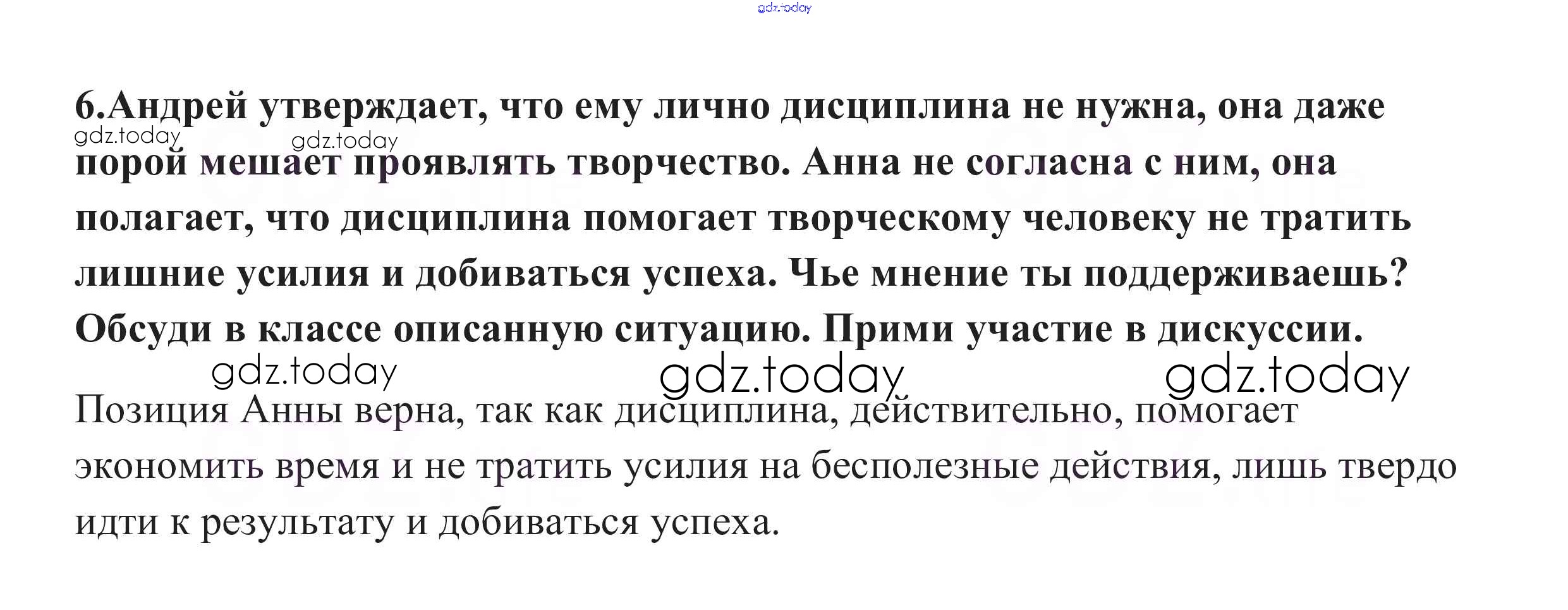 На страницах сайта gdz.today вы найдете учебный и вспомогательный материал, направленный на улучшения знаний школьной программы. ГДЗ - онлайн мир знаний В классе и дома §5. Для чего нужна дисциплина 6 Учебнику по Обществознанию для 7 класса Боголюбов, Городецкая Просвещение, Просвещение Академический школьный учебник 2015, 2022