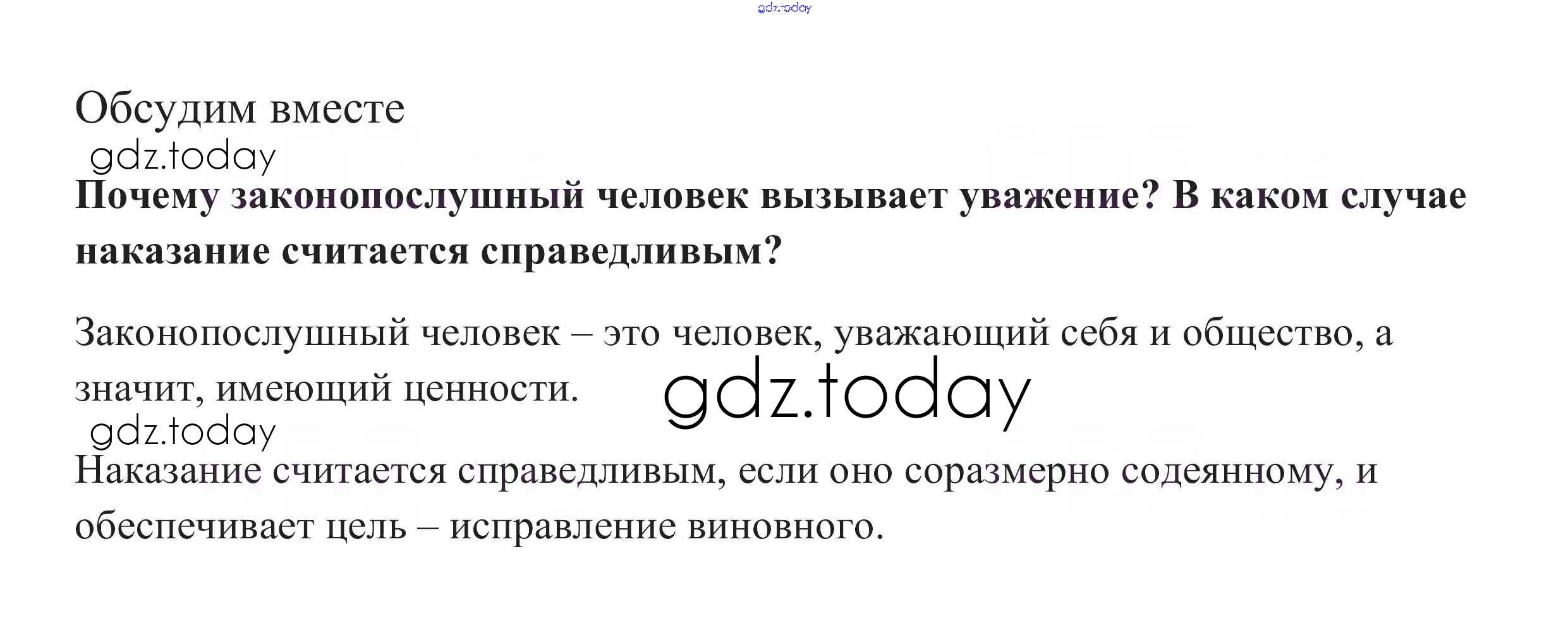На страницах сайта gdz.today вы найдете учебный и вспомогательный материал, направленный на улучшения знаний школьной программы. ГДЗ - онлайн мир знаний Обсудим вместе §6. Виновен - отвечай 1 Учебнику по Обществознанию для 7 класса Боголюбов, Городецкая Просвещение, Просвещение Академический школьный учебник 2015, 2019