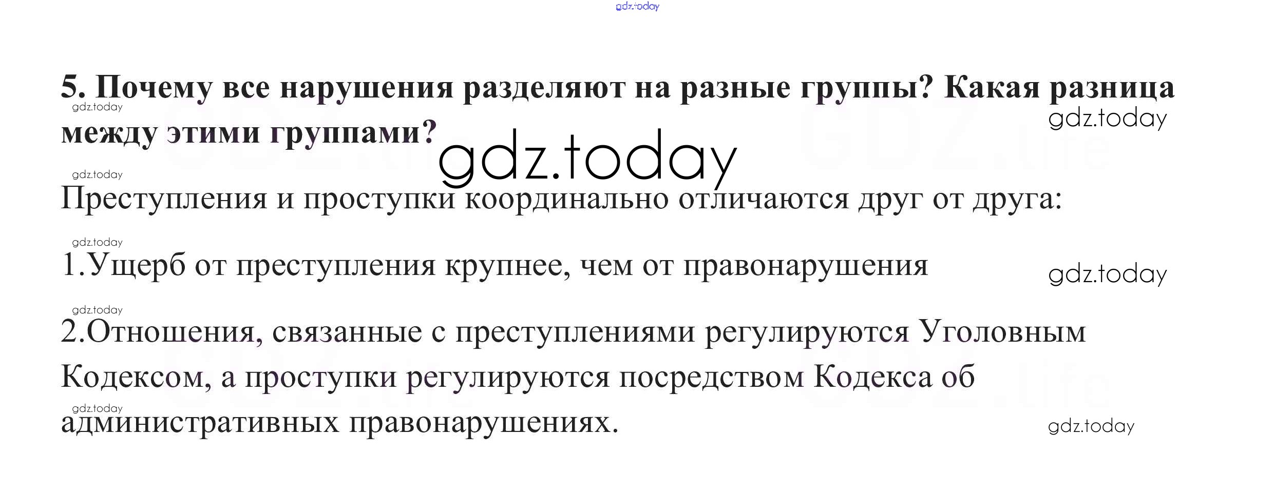 На страницах сайта gdz.today вы найдете учебный и вспомогательный материал, направленный на улучшения знаний школьной программы. ГДЗ - онлайн мир знаний Проверим себя §6. Виновен - отвечай 5 Учебнику по Обществознанию для 7 класса Боголюбов, Городецкая Просвещение, Просвещение Академический школьный учебник 2015, 2019