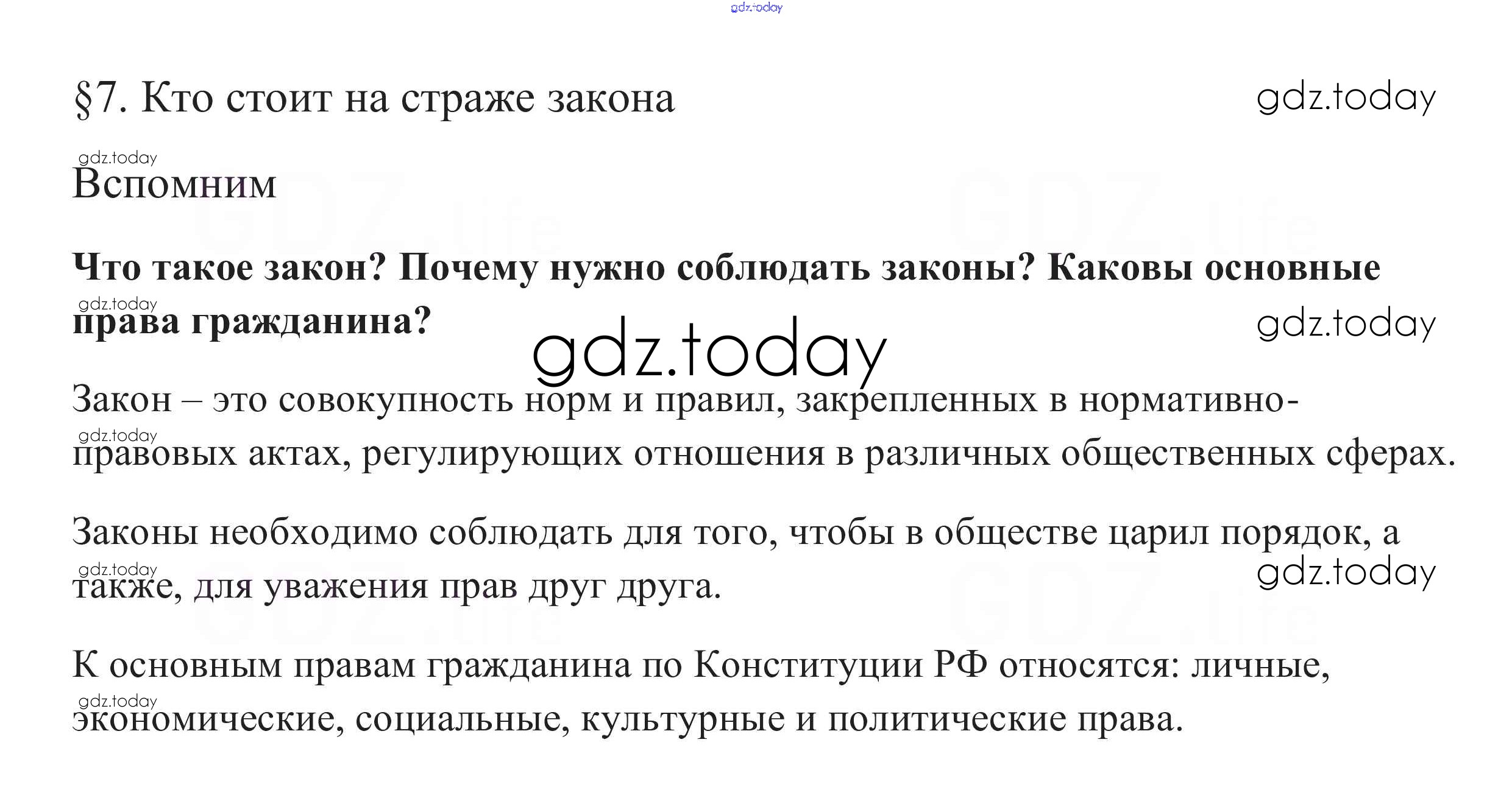 На страницах сайта gdz.today вы найдете учебный и вспомогательный материал, направленный на улучшения знаний школьной программы. ГДЗ - онлайн мир знаний Вспомним §7. Кто стоит на страже закона 1 Учебнику по Обществознанию для 7 класса Боголюбов, Городецкая Просвещение, Просвещение Академический школьный учебник 2015, 2022