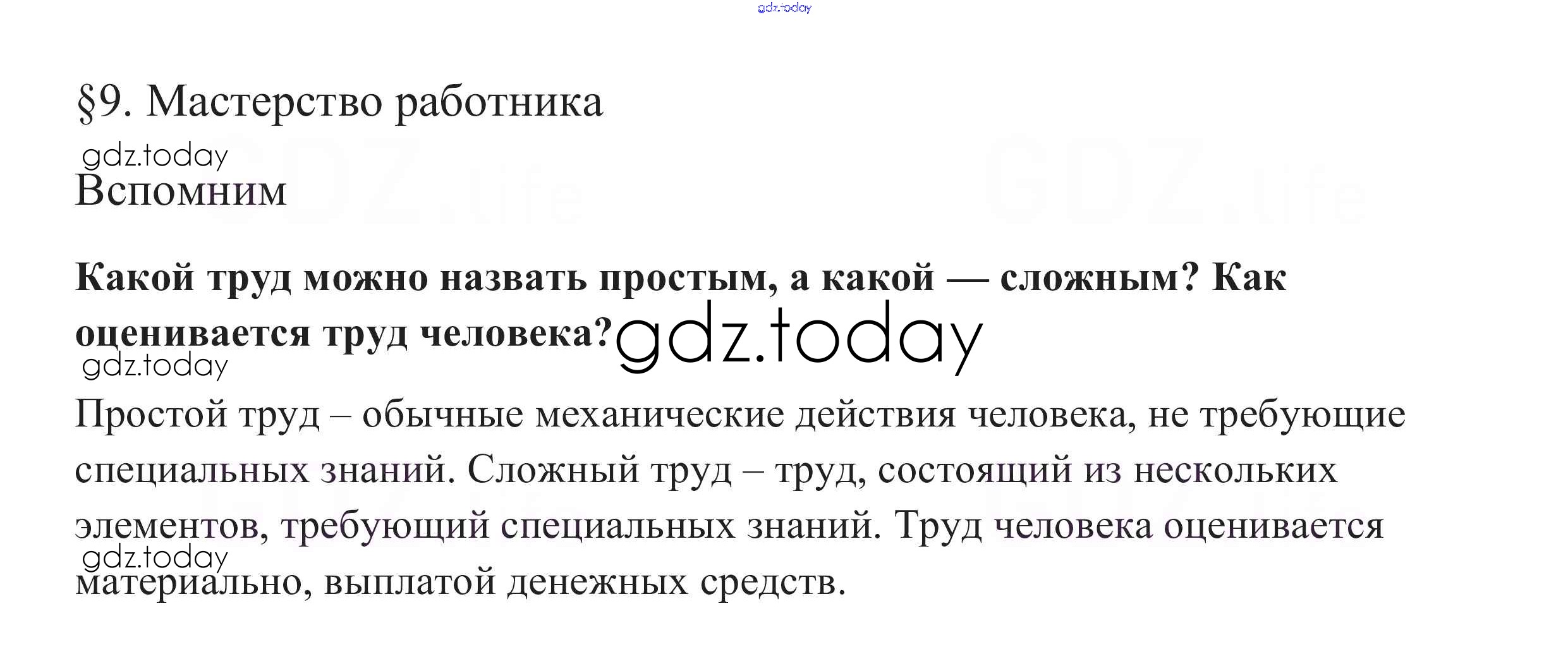 На страницах сайта gdz.today вы найдете учебный и вспомогательный материал, направленный на улучшения знаний школьной программы. ГДЗ - онлайн мир знаний Вспомним §9. Мастерство работника 1 Учебнику по Обществознанию для 7 класса Боголюбов, Городецкая Просвещение, Просвещение Академический школьный учебник 2015, 2019