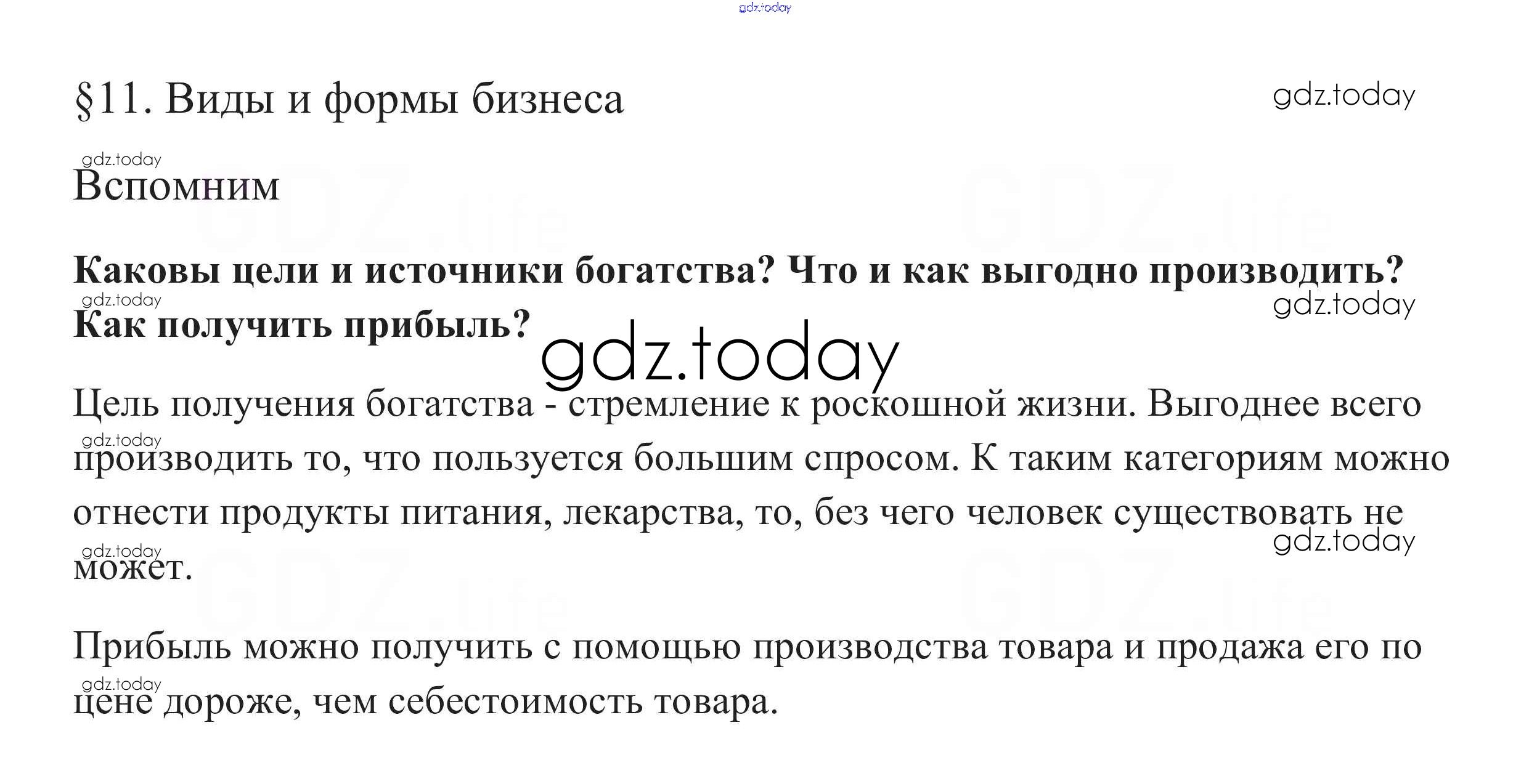 На страницах сайта gdz.today вы найдете учебный и вспомогательный материал, направленный на улучшения знаний школьной программы. ГДЗ - онлайн мир знаний Вспомним §11. Виды и формы бизнеса 1 Учебнику по Обществознанию для 7 класса Боголюбов, Городецкая Просвещение, Просвещение Академический школьный учебник 2015, 2019