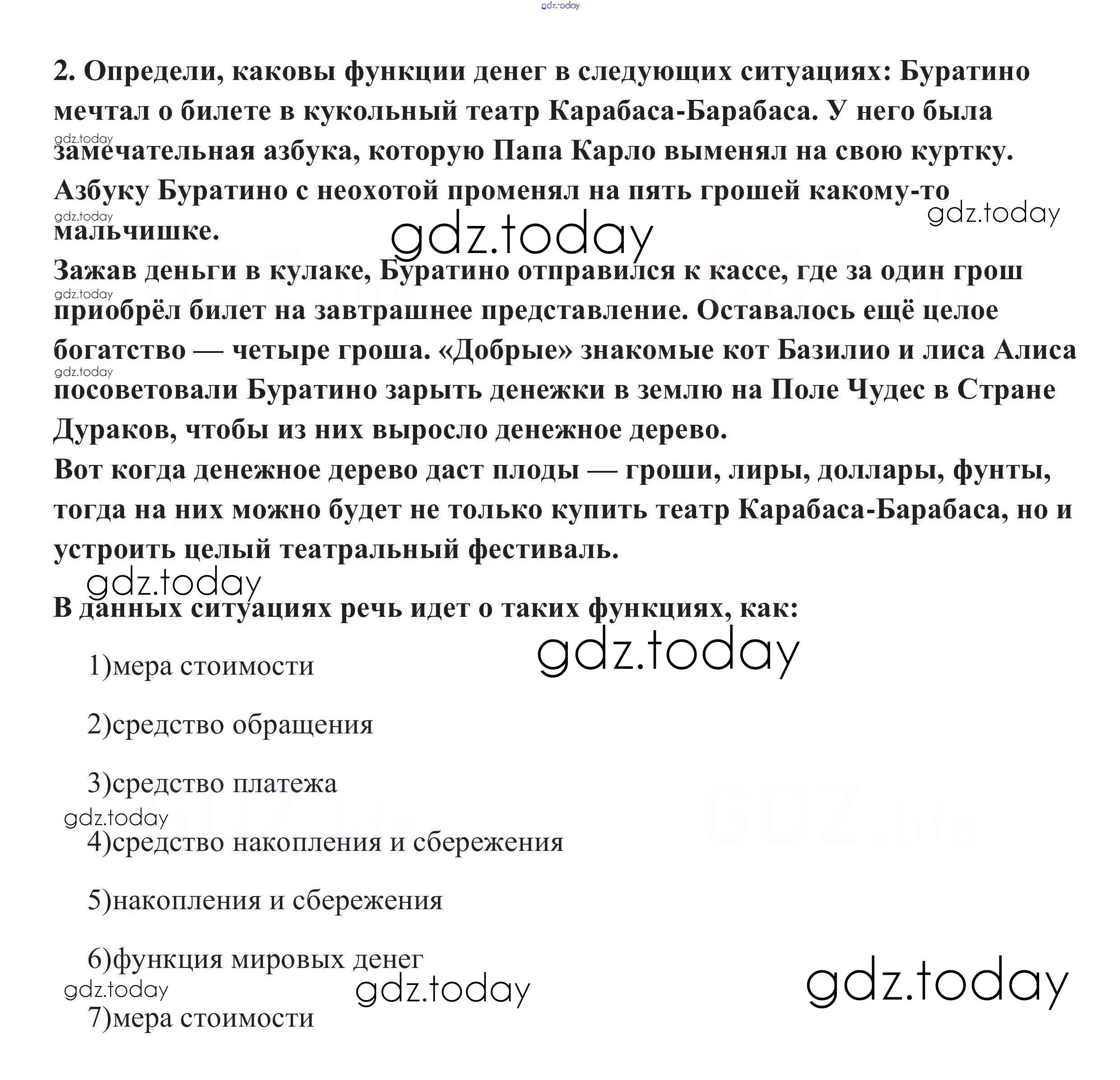На страницах сайта gdz.today вы найдете учебный и вспомогательный материал, направленный на улучшения знаний школьной программы. ГДЗ - онлайн мир знаний В классе и дома §13. Деньги, их функции 2 Учебнику по Обществознанию для 7 класса Боголюбов, Городецкая Просвещение, Просвещение Академический школьный учебник 2015, 2022