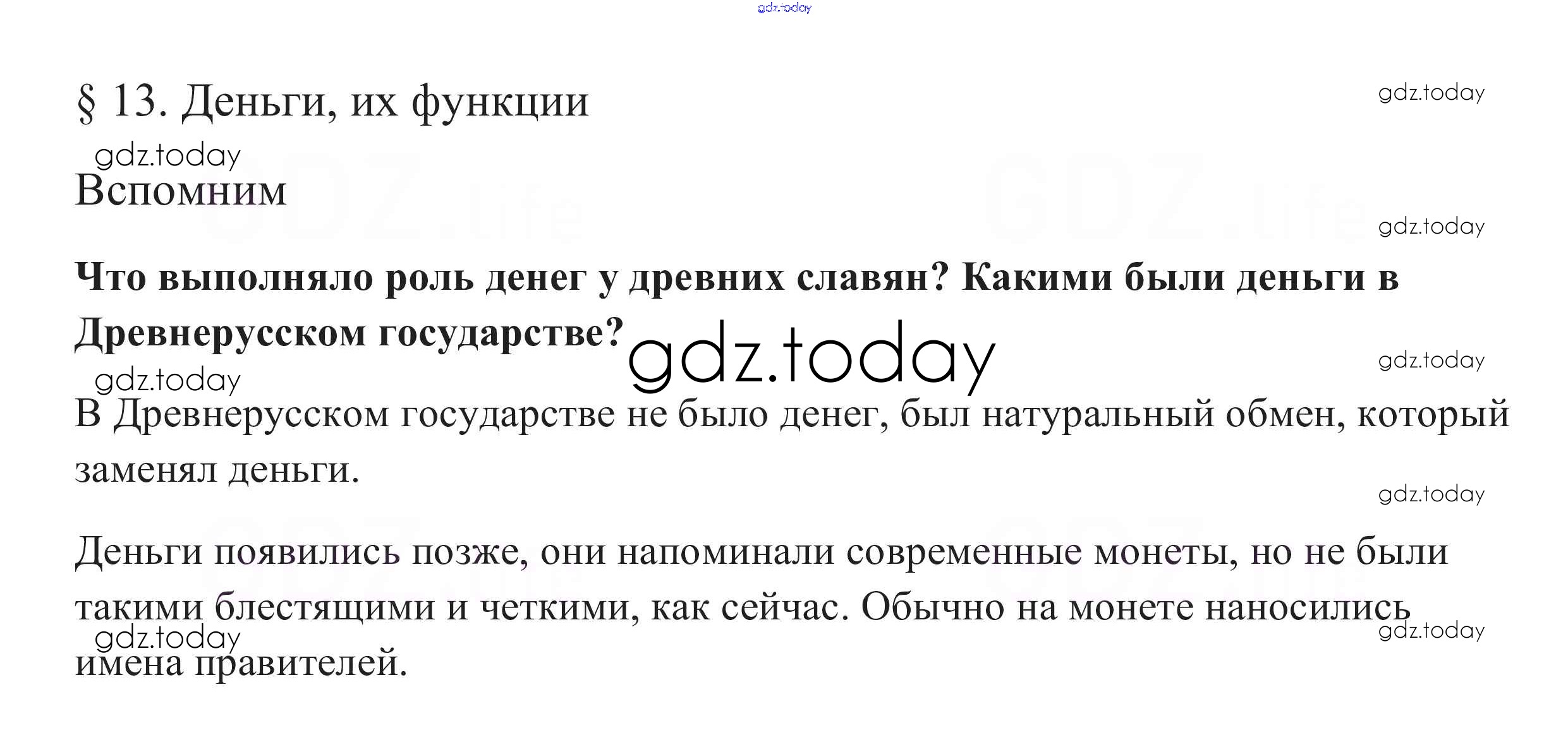 На страницах сайта gdz.today вы найдете учебный и вспомогательный материал, направленный на улучшения знаний школьной программы. ГДЗ - онлайн мир знаний Вспомним §13. Деньги, их функции 1 Учебнику по Обществознанию для 7 класса Боголюбов, Городецкая Просвещение, Просвещение Академический школьный учебник 2015, 2022