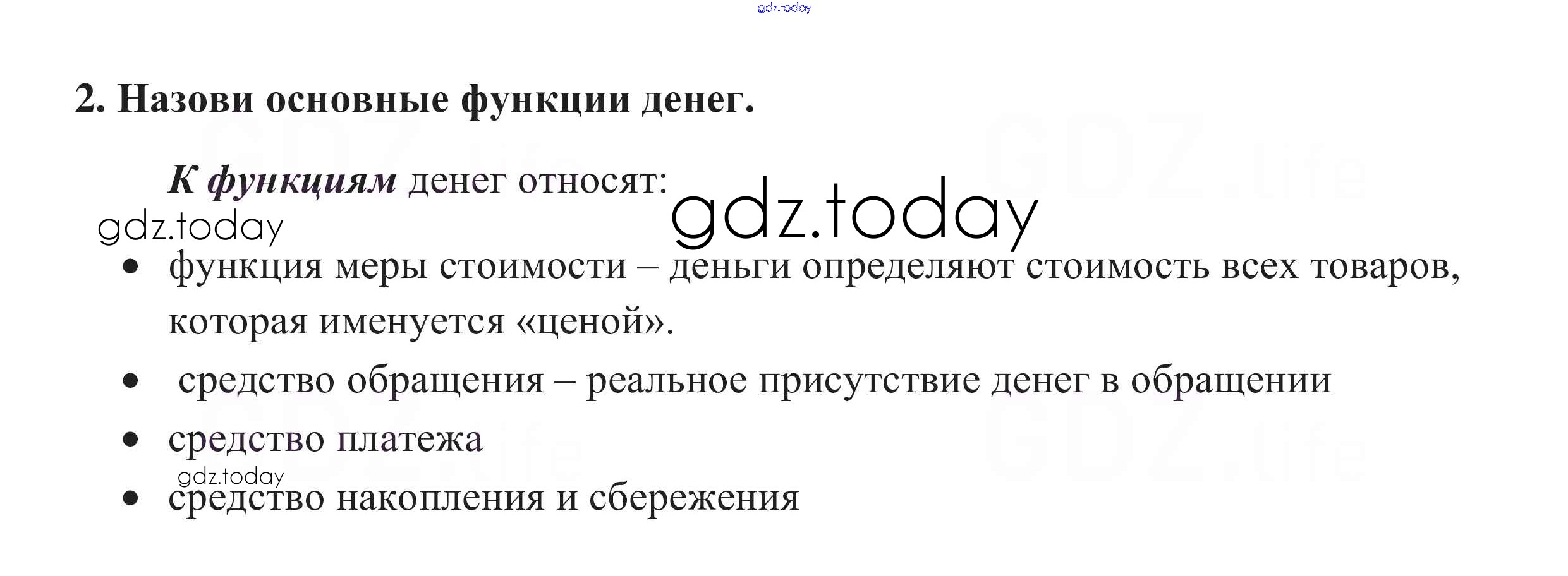 На страницах сайта gdz.today вы найдете учебный и вспомогательный материал, направленный на улучшения знаний школьной программы. ГДЗ - онлайн мир знаний Проверим себя §13. Деньги, их функции 2 Учебнику по Обществознанию для 7 класса Боголюбов, Городецкая Просвещение, Просвещение Академический школьный учебник 2015, 2022