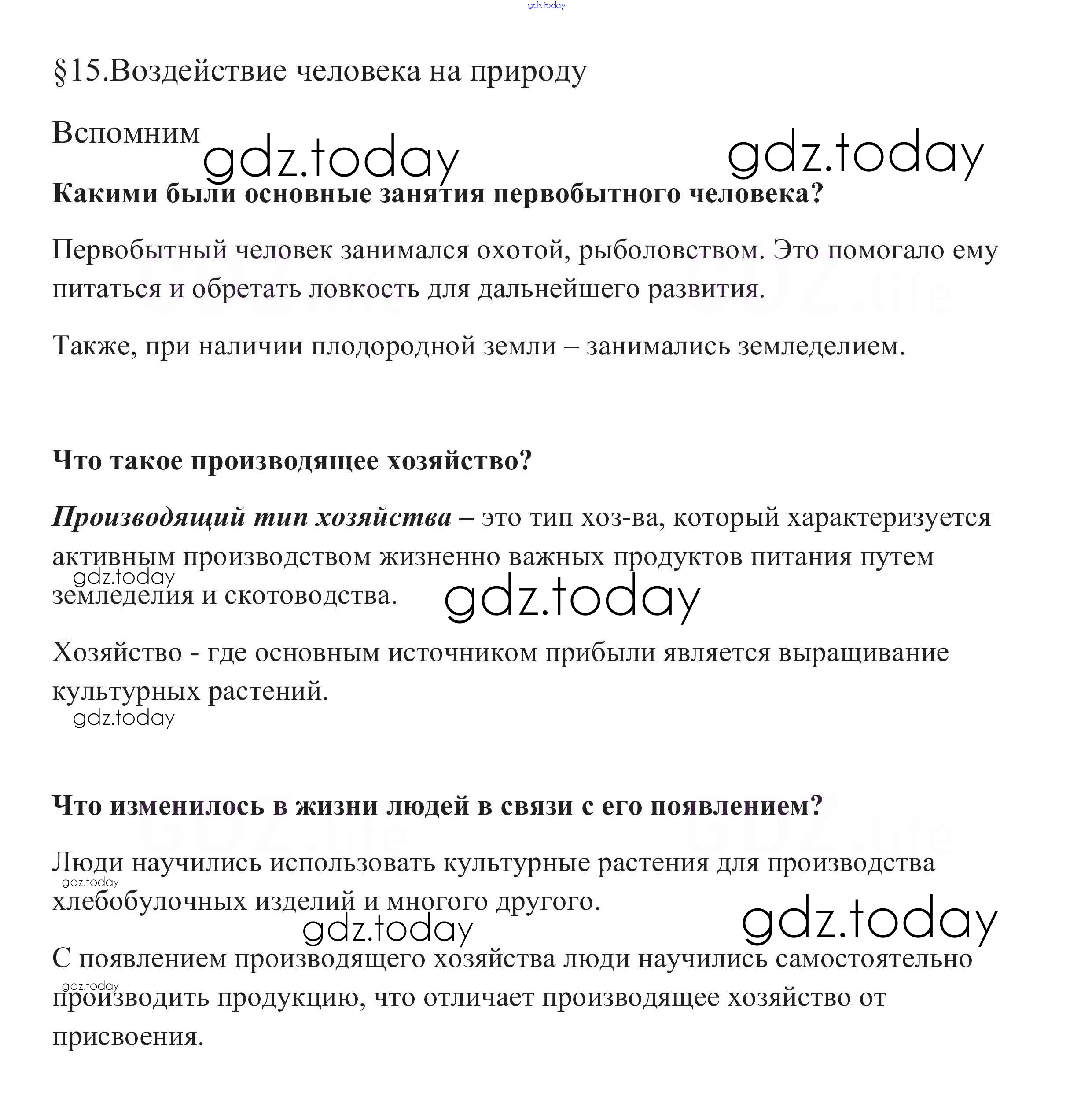 На страницах сайта gdz.today вы найдете учебный и вспомогательный материал, направленный на улучшения знаний школьной программы. ГДЗ - онлайн мир знаний Вспомним §15. Воздействие человека на природу 1 Учебнику по Обществознанию для 7 класса Боголюбов, Городецкая Просвещение, Просвещение Академический школьный учебник 2015, 2019