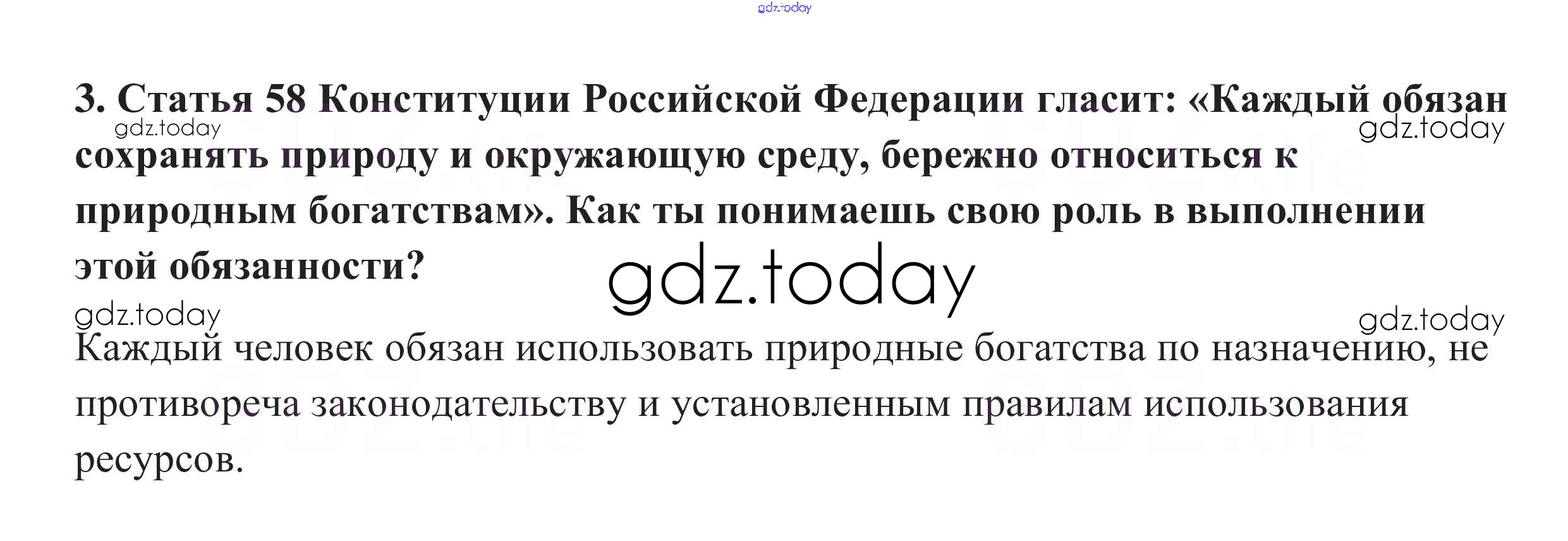 На страницах сайта gdz.today вы найдете учебный и вспомогательный материал, направленный на улучшения знаний школьной программы. ГДЗ - онлайн мир знаний В классе и дома §17. Закон на страже природы 3 Учебнику по Обществознанию для 7 класса Боголюбов, Городецкая Просвещение, Просвещение Академический школьный учебник 2015, 2019