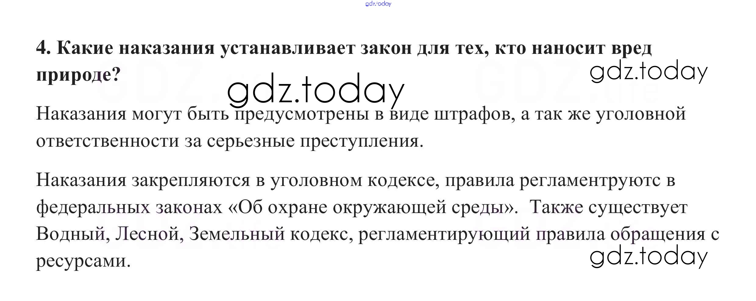 На страницах сайта gdz.today вы найдете учебный и вспомогательный материал, направленный на улучшения знаний школьной программы. ГДЗ - онлайн мир знаний Проверим себя §17. Закон на страже природы 4 Учебнику по Обществознанию для 7 класса Боголюбов, Городецкая Просвещение, Просвещение Академический школьный учебник 2015, 2019