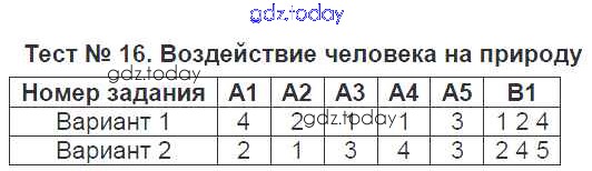 Ответы к Решение к тестам Тест №16. Воздействие человека на природу Контрольно-измерительным материалам (КИМ) по Обществознанию для 7 класса Волкова ВАКО 2017