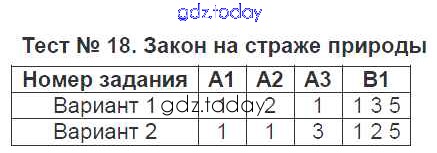 На страницах сайта gdz.today вы найдете учебный и вспомогательный материал, направленный на улучшения знаний школьной программы. ГДЗ - онлайн мир знаний Решение к тестам Тест №18. Закон на страже природы Контрольно-измерительным материалам (КИМ) по Обществознанию для 7 класса Волкова ВАКО 2017