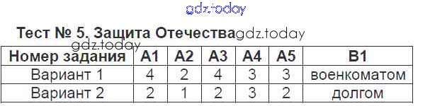 На страницах сайта gdz.today вы найдете учебный и вспомогательный материал, направленный на улучшения знаний школьной программы. ГДЗ - онлайн мир знаний Решение к тестам Тест №5. Защита Отечества Контрольно-измерительным материалам (КИМ) по Обществознанию для 7 класса Волкова ВАКО 2017