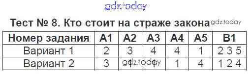 На страницах сайта gdz.today вы найдете учебный и вспомогательный материал, направленный на улучшения знаний школьной программы. ГДЗ - онлайн мир знаний Решение к тестам Тест №8. Кто стоит на страже закона Контрольно-измерительным материалам (КИМ) по Обществознанию для 7 класса Волкова ВАКО 2017