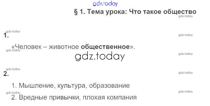 На страницах сайта gdz.today вы найдете учебный и вспомогательный материал, направленный на улучшения знаний школьной программы. ГДЗ - онлайн мир знаний Решение к § 1. Что такое общество страница 5 Рабочей тетради по Обществознанию для 7 класса Соболева Вентана-граф Алгоритм успеха 2018