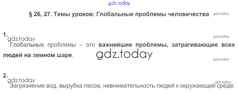 На страницах сайта gdz.today вы найдете учебный и вспомогательный материал, направленный на улучшения знаний школьной программы. ГДЗ - онлайн мир знаний Решение к § 26-27. Глобальные проблемы человечества страница 85 Рабочей тетради по Обществознанию для 7 класса Соболева Вентана-граф Алгоритм успеха 2018