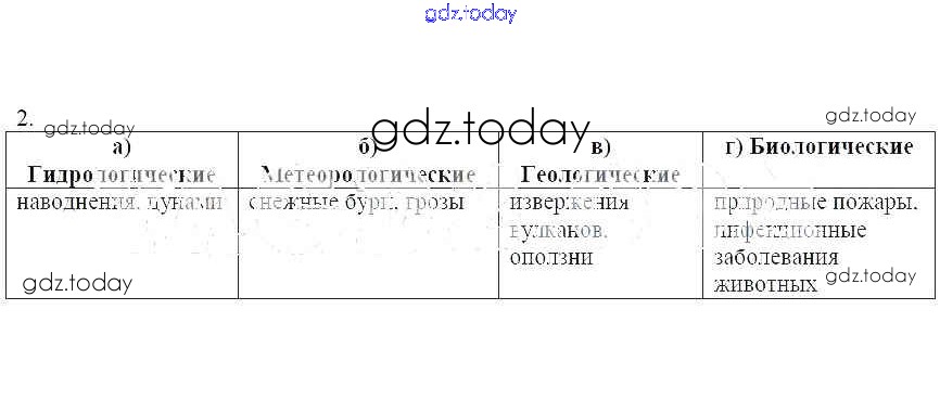 На страницах сайта gdz.today вы найдете учебный и вспомогательный материал, направленный на улучшения знаний школьной программы. ГДЗ - онлайн мир знаний Работа 1 Решение к теме 2. Общая характеристика природных явлений 2 Рабочей тетради по ОБЖ для 7 класса Демидов Лицей 2016