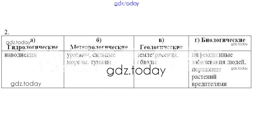 На страницах сайта gdz.today вы найдете учебный и вспомогательный материал, направленный на улучшения знаний школьной программы. ГДЗ - онлайн мир знаний Работа 2 Решение к теме 2. Общая характеристика природных явлений 2 Рабочей тетради по ОБЖ для 7 класса Демидов Лицей 2016
