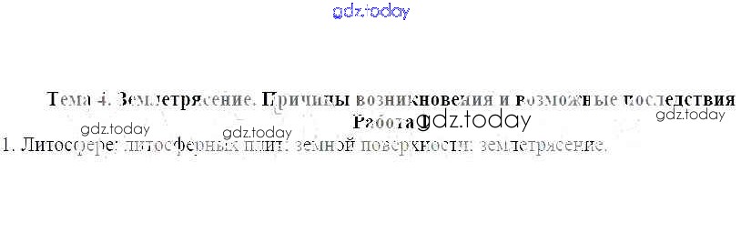 Ответы к Работа 1 Решение к теме 4. Землетрясение. Причины возникновения и возможные последствия 1 Рабочей тетради по ОБЖ для 7 класса Демидов Лицей 2016
