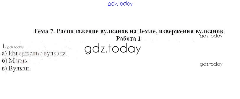 На страницах сайта gdz.today вы найдете учебный и вспомогательный материал, направленный на улучшения знаний школьной программы. ГДЗ - онлайн мир знаний Работа 1 Решение к теме 7. Расположение вулканов на Земле, извержения вулканов 1 Рабочей тетради по ОБЖ для 7 класса Демидов Лицей 2016