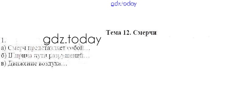 На страницах сайта gdz.today вы найдете учебный и вспомогательный материал, направленный на улучшения знаний школьной программы. ГДЗ - онлайн мир знаний Решение к теме 12. Смерчи 1 Рабочей тетради по ОБЖ для 7 класса Демидов Лицей 2016