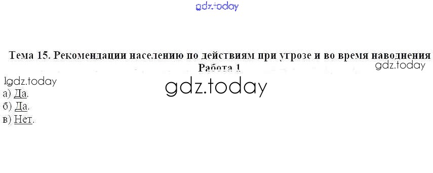 На страницах сайта gdz.today вы найдете учебный и вспомогательный материал, направленный на улучшения знаний школьной программы. ГДЗ - онлайн мир знаний Работа 1 Решение к теме 15. Рекомендации населению по действиям при угрозе и во время наводнения 1 Рабочей тетради по ОБЖ для 7 класса Демидов Лицей 2016