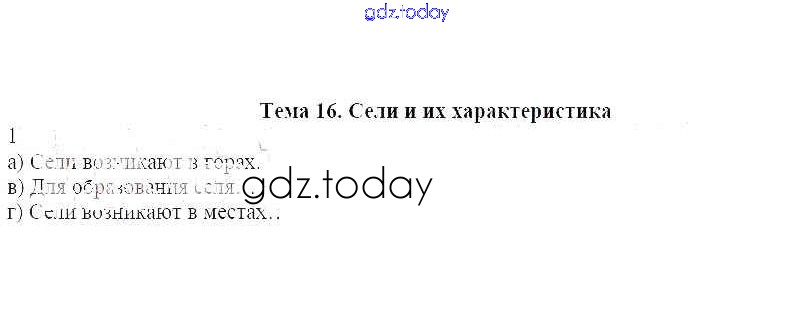 На страницах сайта gdz.today вы найдете учебный и вспомогательный материал, направленный на улучшения знаний школьной программы. ГДЗ - онлайн мир знаний Решение к теме 16. Сели и их характеристика 1 Рабочей тетради по ОБЖ для 7 класса Демидов Лицей 2016
