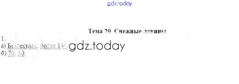 На страницах сайта gdz.today вы найдете учебный и вспомогательный материал, направленный на улучшения знаний школьной программы. ГДЗ - онлайн мир знаний Решение к теме 20. Снежные лавины 1 Рабочей тетради по ОБЖ для 7 класса Демидов Лицей 2016