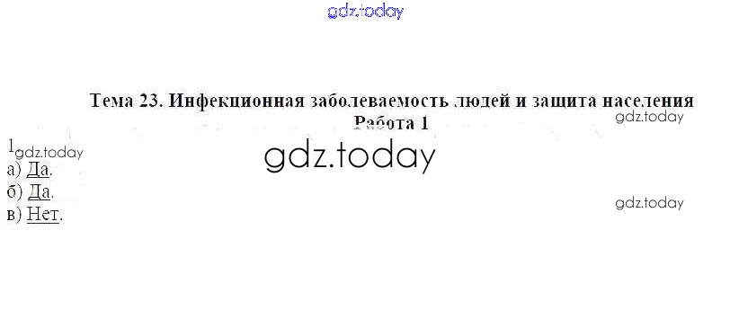 Ответы к Работа 1 Решение к теме 23. Инфекционная заболеваемость людей и защита населения 1 Рабочей тетради по ОБЖ для 7 класса Демидов Лицей 2016