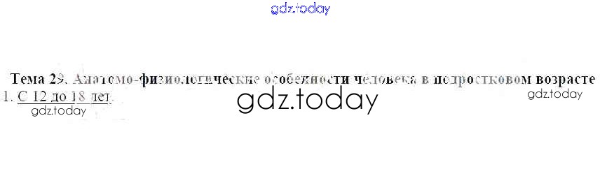 На страницах сайта gdz.today вы найдете учебный и вспомогательный материал, направленный на улучшения знаний школьной программы. ГДЗ - онлайн мир знаний Решение к теме 29. Анатомо-физиологические особенности человека в подростковом возрасте 1 Рабочей тетради по ОБЖ для 7 класса Демидов Лицей 2016
