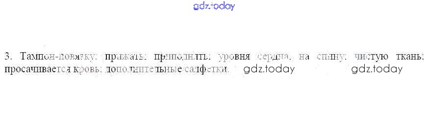 На страницах сайта gdz.today вы найдете учебный и вспомогательный материал, направленный на улучшения знаний школьной программы. ГДЗ - онлайн мир знаний Решение к теме 31. Оказание первой помощи при наружном кровотечении 3 Рабочей тетради по ОБЖ для 7 класса Демидов Лицей 2016