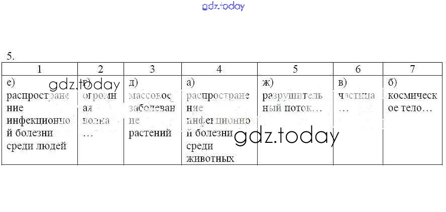 На страницах сайта gdz.today вы найдете учебный и вспомогательный материал, направленный на улучшения знаний школьной программы. ГДЗ - онлайн мир знаний Решение к теме 2. Общая характеристика природных явлений 5 Рабочей тетради по ОБЖ для 7 класса Егорова Лицей 2012